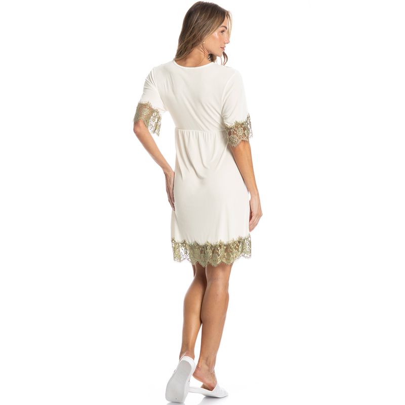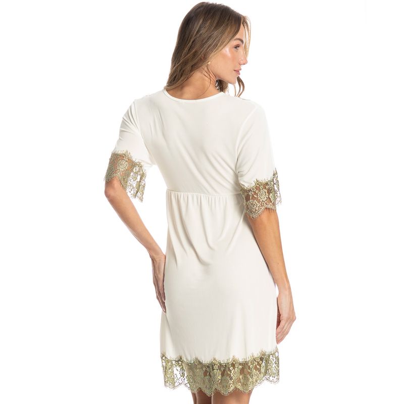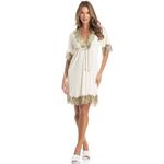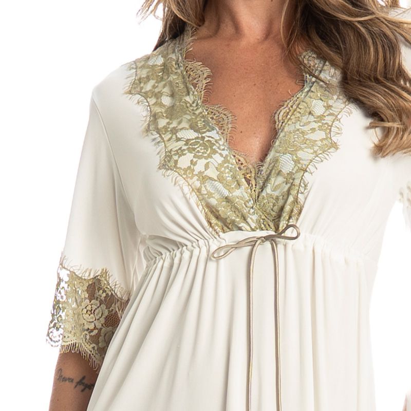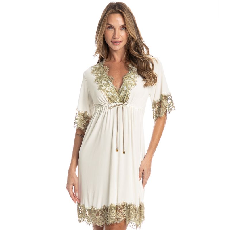 Bata Manga Curta Com Renda Petúnia é puro conforto! Em modelagem ampla, a Bata Petúnia possui comprimento curto, decote “V” transpassado e manga curta. Conta com aplicação de uma linda e delicada renda no decote, mangas e barra. Detalhe para seu amarre abaixo do busto, proporcionando o ajuste necessário. A escolha perfeita para seus momentos de descanso!