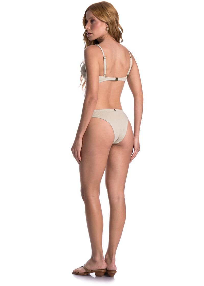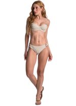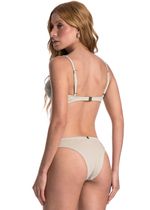Biquíni Aro Corset Slim Com Argola Dunas é perfeito os dias de sol! Com foco no conforto combinado ao estilo, este biquíni traz uma nova modelagem de top slim com estrutura em corset que revela uma sensualidade sutil destacando o busto feminino. Seu top com aro corset slim é o modelo ideal para quem busca uma boa sustentação, porém com bojo removível. Conta com alças reguláveis que proporcionam estabilidade e conforto. Sua calcinha com modelagem de alta cobertura, traz como detalhe uma sofisticada argola garantindo muita delicadeza para a peça sem marcar a cintura.