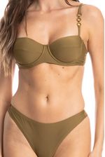 Biquíni Corset Slim Gigi Inteira Erva Doce é tendência para o verão! Com foco no conforto aliado ao estilo, este biquíni traz uma modelagem atualizada com estrutura em corset que revela uma sensualidade sutil destacando o busto feminino. Seu top corset é o modelo ideal para quem busca uma boa sustentação, porém com bojo removível. Conta com alças finas e reguláveis que proporcionam estabilidade e conforto. Detalhe para suas argolas nas alças, proporcionando exclusividade e ainda mais estilo. A calcinha tem modelagem tanga de cobertura pequena e recorte fio duplo, que realça as curvas e proporciona o desejado efeito empina bumbum. Um biquíni poderoso para aproveitar o verão com confiança e charme!