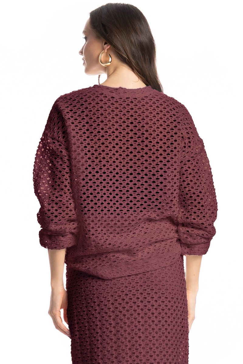 A Blusa Com Manga Mangostim traz um visual moderno e estiloso, perfeita para compor looks casuais com um toque de sofisticação. Possui modelagem ampla, mangas longas e acabamento vazado que garante leveza e charme ao visual. O decote redondo e o caimento confortável proporcionam praticidade e elegância em qualquer ocasião.