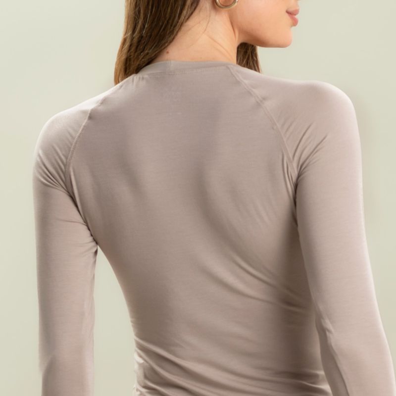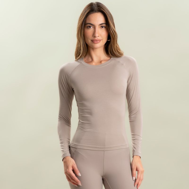 Blusa Feminina Manga longa Raglan Micromodal Stone Vivame é o básico com estilo para os seus treinos e dia a dia! Em modelagem mais justa e confortável com manga longa estilo raglan, possui decote redondo com acabamento em viés. A peça apresenta uma proposta de usabilidade versátil, que possibilita diferentes composições de looks, perfeita para você que gosta de estar estilosa em todas as horas!