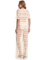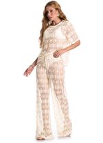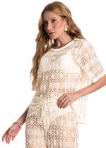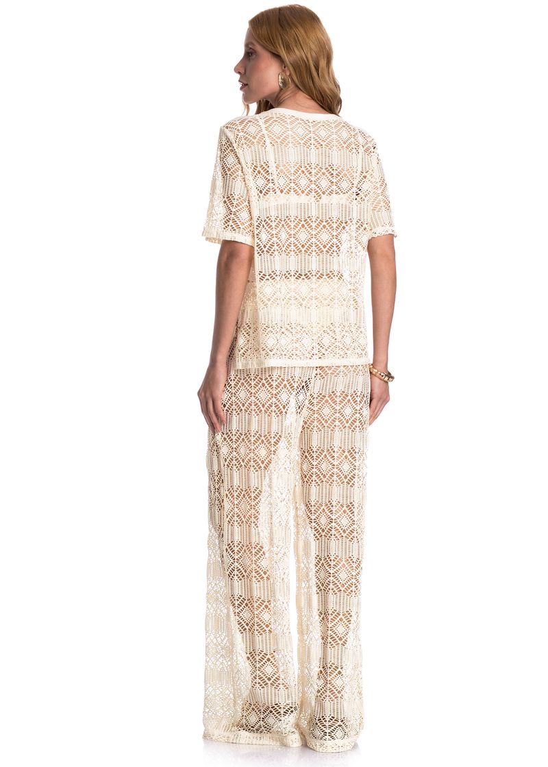 Confeccionada em Rendão, tecido vazado que confere uma aparência natural e única ao produto. Agradável ao toque e com caimento suave. Perfeito para peças de sobreposição e com leve transparência.