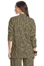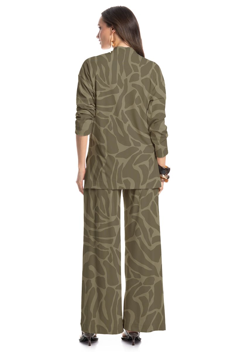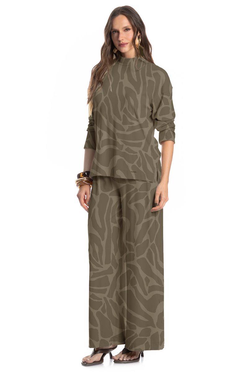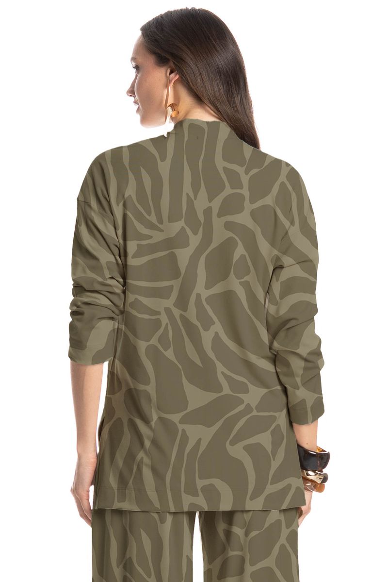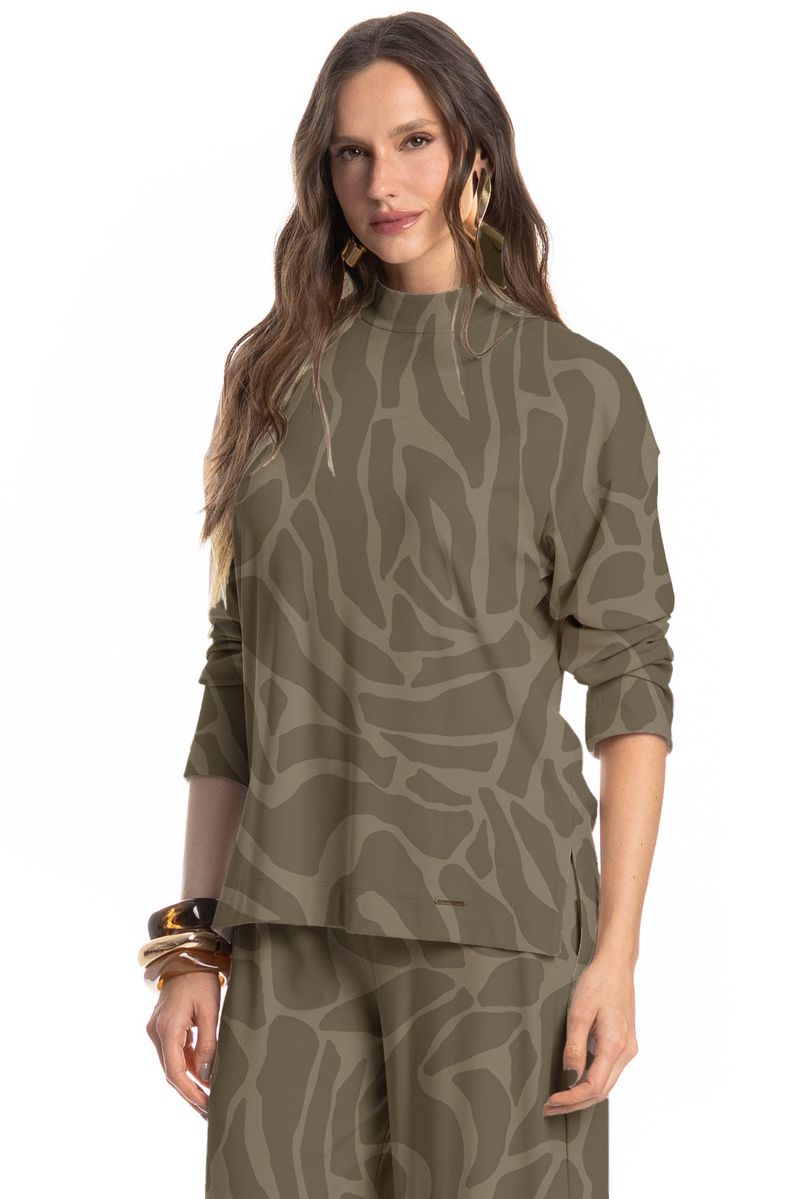 A Blusa feminina Safari possui uma modelagem reta e gola alta, confeccionada em tecido leve de toque macio, proporcionando conforto e elegância, perfeita para compor produções estilosas tanto para o dia quanto para a noite.