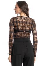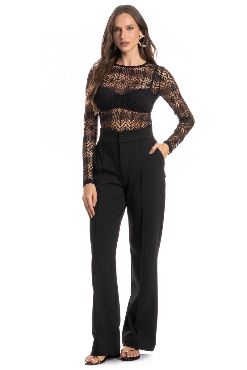 Confeccionada em Rendão, tecido vazado que confere uma aparência natural e única ao produto. Agradável ao toque e com caimento suave. Perfeito para peças de sobreposição e com leve transparência.