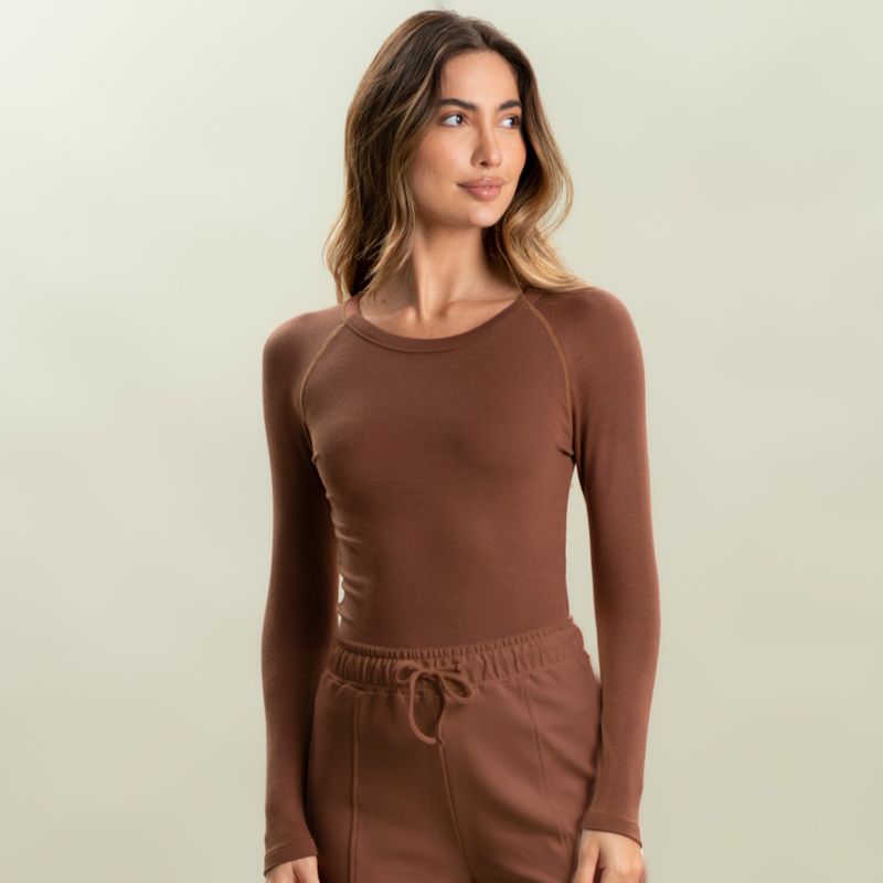 Blusa Manga longa Modal Canelada Vivame é o básico com estilo para os seus treinos e dia a dia! Em modelagem mais justa e confortável com manga longa estilo raglan, possui decote redondo com acabamento em viés. A peça apresenta uma proposta de usabilidade versátil, que possibilita diferentes composições de looks, perfeita para você que gosta de estar estilosa em todas as horas!