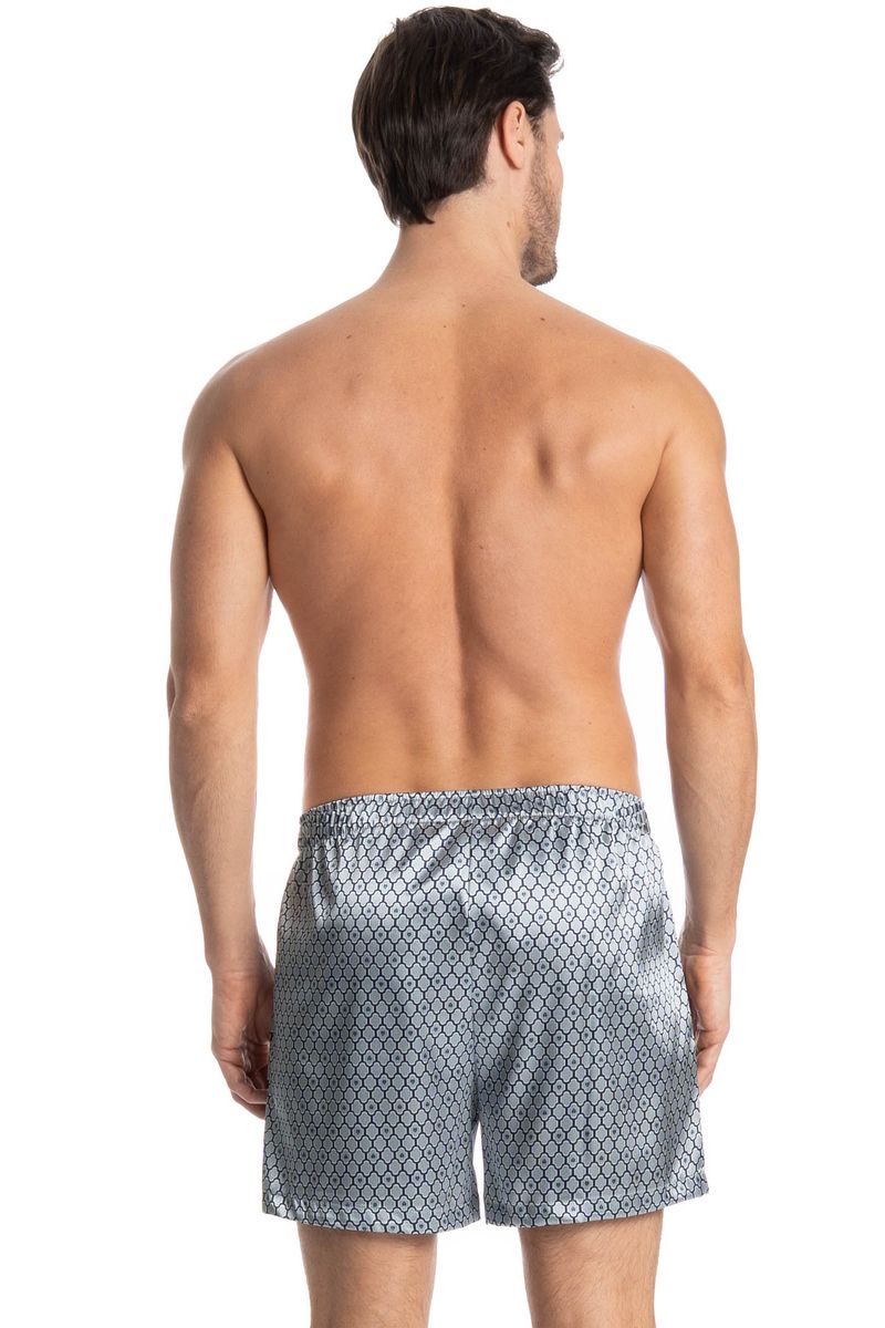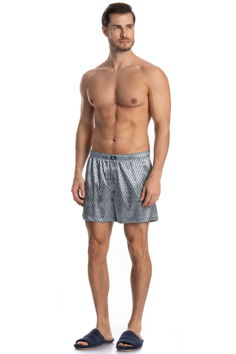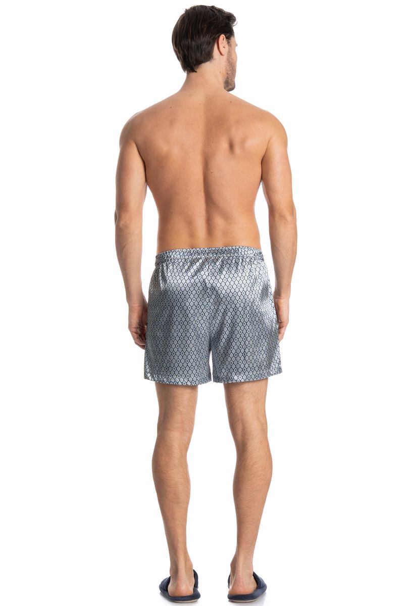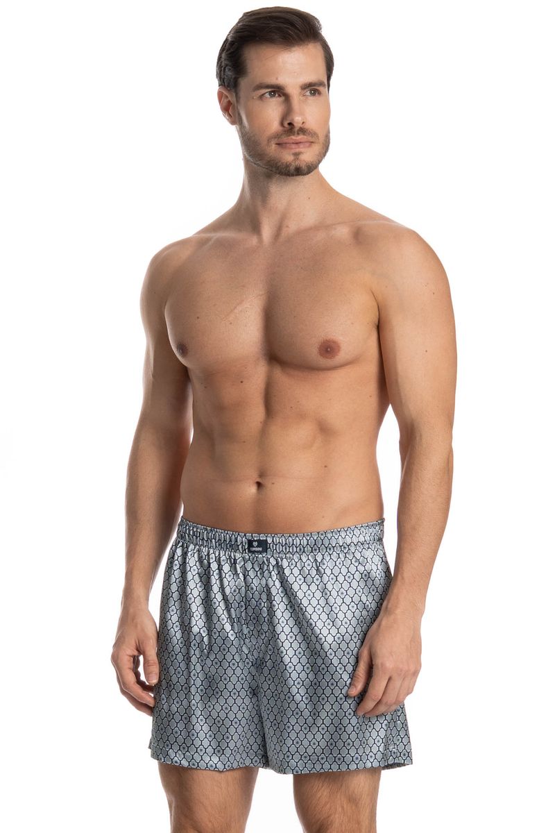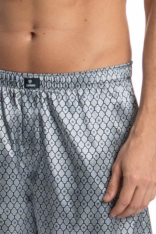 Boxer Masculina Enzo é conforto e estilo para os dias mais quentes! Em modelagem, ampla e confortável. Detalhe da etiqueta personalizada Tombini no centro do cós. A peça é feita em Cetim com elastano, tecido plano de aspecto brilhante, de toque fluido e macio. Composto por fios de poliéster e elastano garantindo maior conforto e elasticidade ao produto. Sua composição permite estampas com mais definição, cor e brilho acetinado. Disponível em três opções de estampa!