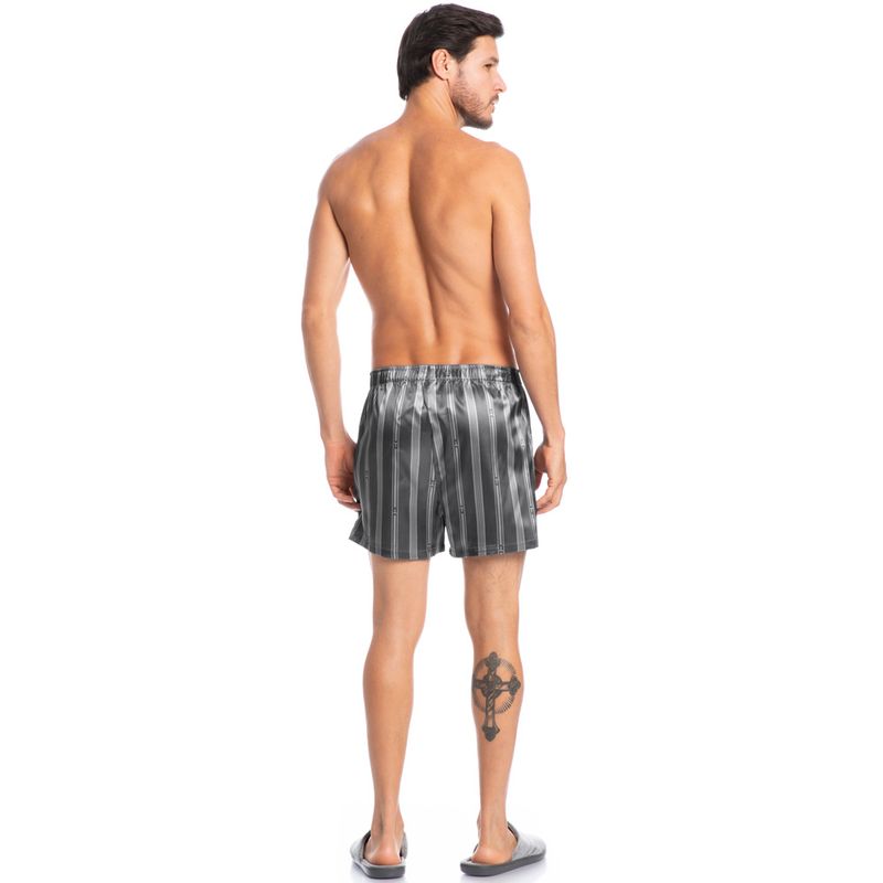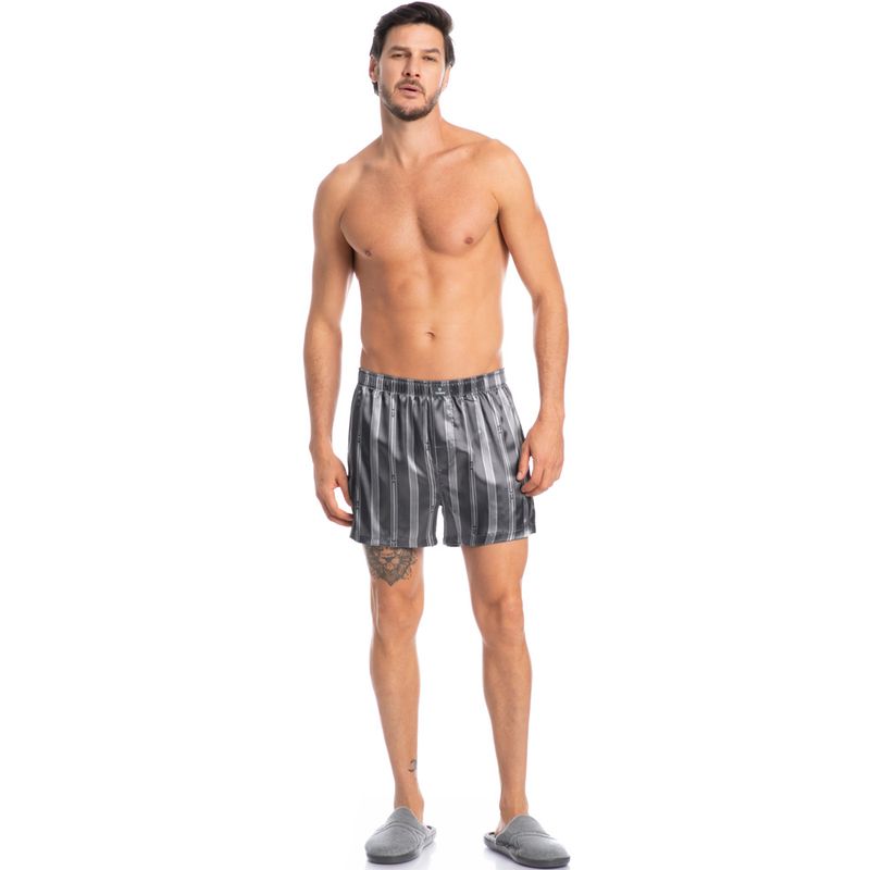 Boxer Masculina Estampada Enzo Tombini é conforto e estilo para seus dias! Em modelagem, ampla e confortável, essa peça é estampada em sublimação o que confere um toque único para a peça. Em seis variações de estampas totalmente exclusivas com cores clássicas, porém cheias de estilo e personalidade. Detalhe da etiqueta Tombini no centro do cós. A peça é feita em Cetim com elastano, tecido plano de aspecto brilhante, liso, de toque fluido e macio. Composto por fios de poliéster e elastano garantindo maior conforto e elasticidade ao produto. Sua composição permite estampas com mais definição, cor e brilho acetinado.