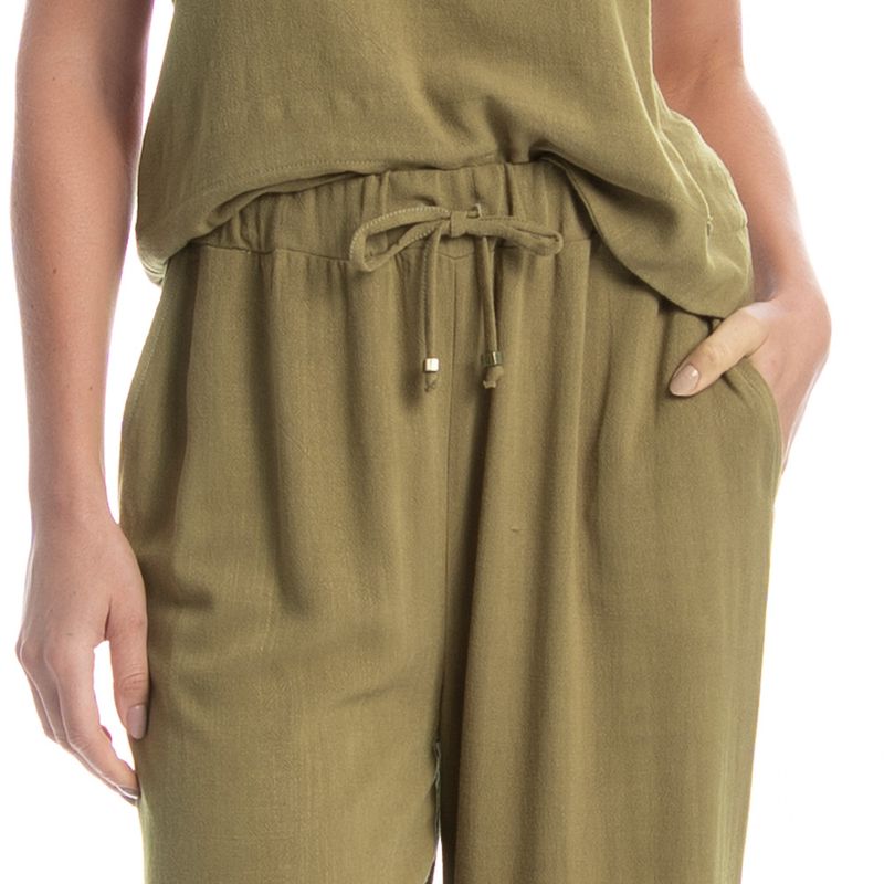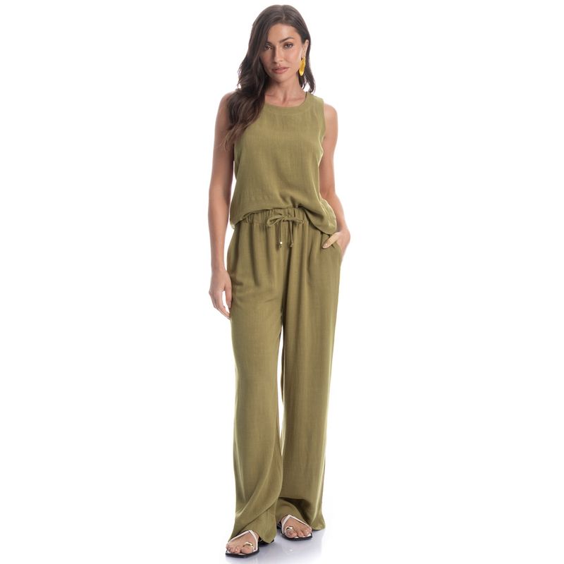 Calça Ampla Com Bolso Belize é perfeita para seu verão! Sua modelagem ampla, possui bolsos frontais estilo faca e elástico macio no cós. Detalhe para seu amarre na cintura proporcionando o ajuste perfeito. Uma excelente opção para te deixar ainda mais estilosa neste verão!