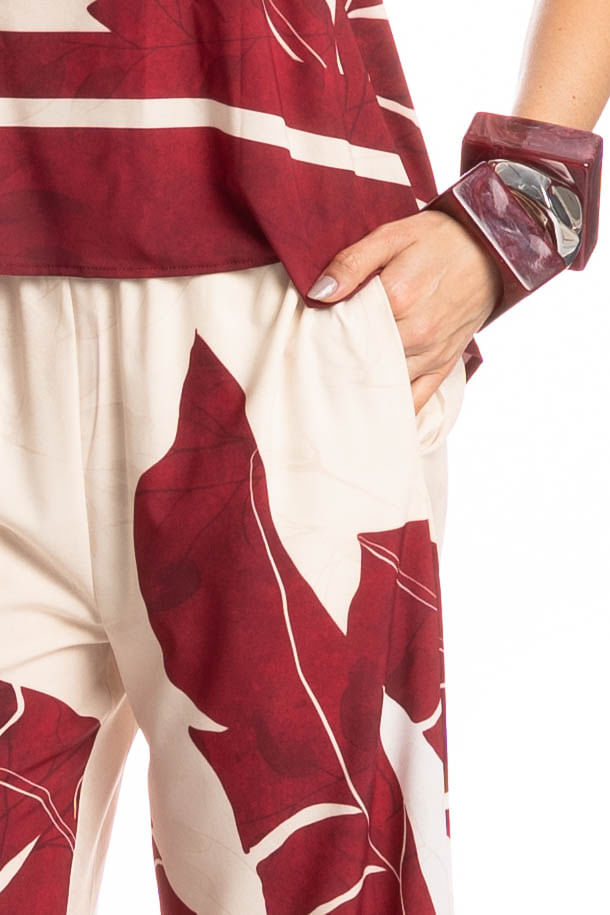 Calça Feminina Com Bolso Folha é perfeita para seu verão! Em uma modelagem ampla e fluida com bolsos laterais estilo faca, a calça Folha possui elástico macio no cós oferecendo o ajuste perfeito. Detalhe para sua linda e moderna estampa exclusiva Daniela Tombini, uma excelente opção para te deixar ainda mais linda neste verão!