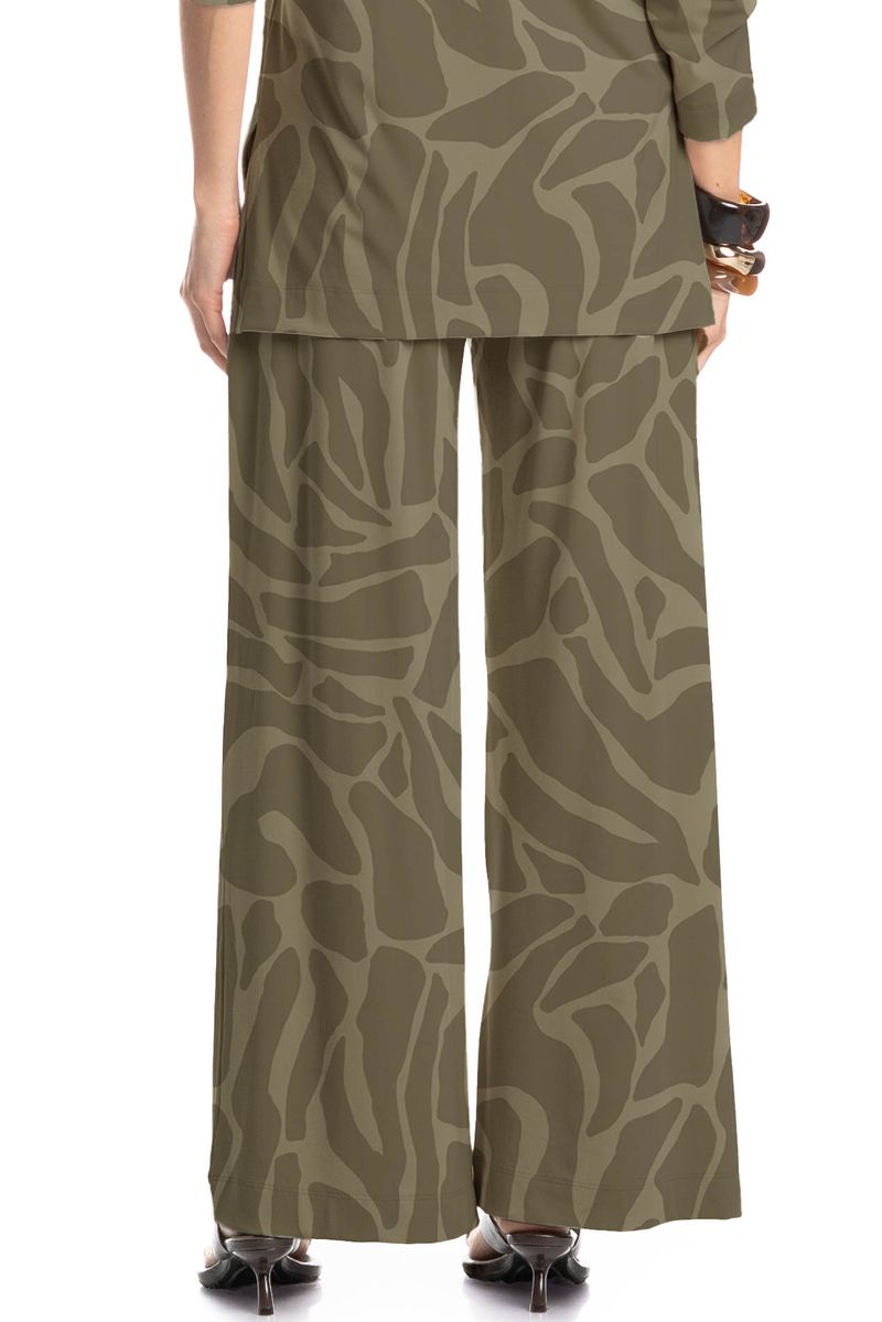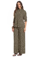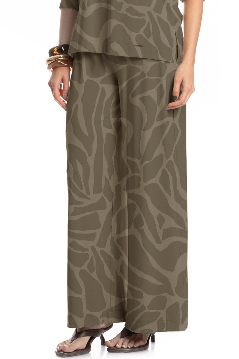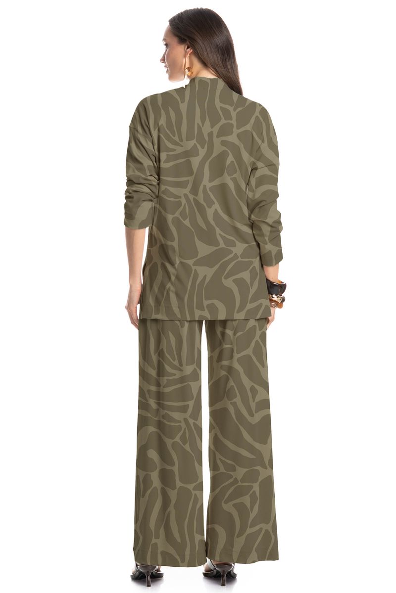 A Calça Safari com cintura média e caimento fluido, garantindo movimento e conforto ao vestir. A estampa abstrata adiciona um ar moderno e sofisticado, ideal para quem busca um look contemporâneo, versátil e cheio de personalidade.