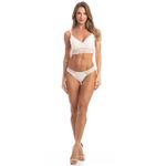 A renda utilizada é um tecido leve e com tramas abertas, conhecido por sua beleza delicada. Seus desenhos são formados por fios de poliamida, poliéster ou algodão. O elastano presente na composição da renda garante ainda mais maciez e elasticidade, permitindo liberdade de movimento. Este material não só valoriza a peça, mas também assegura sua durabilidade, essencial para uma roupa íntima de alta qualidade.Ajuste versátil e confortável