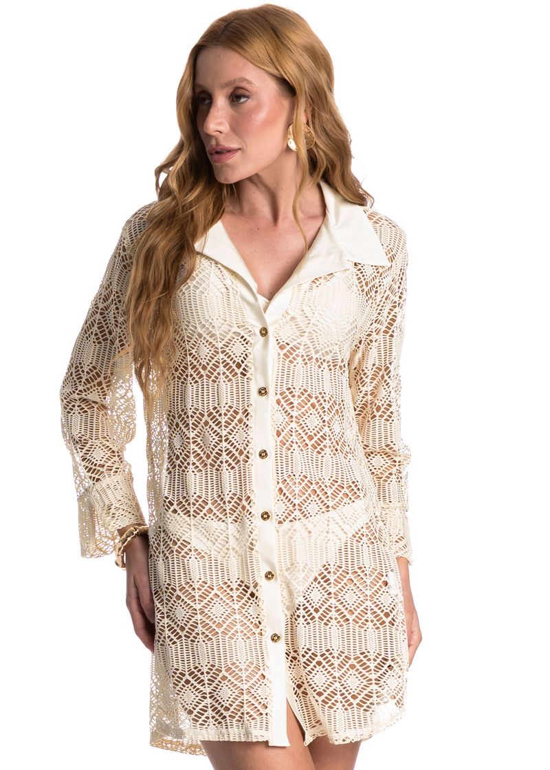 Camisa Feminina Em Rendão Riviera é a peça-chave para um visual sofisticado e descontraído nos dias de sol. Confeccionada em rendão, apresenta transparência elegante e textura delicada, perfeita para compor looks de praia ou piscina. Sua modelagem alongada, com abotoamento frontal e gola clássica, garante versatilidade e charme atemporal.