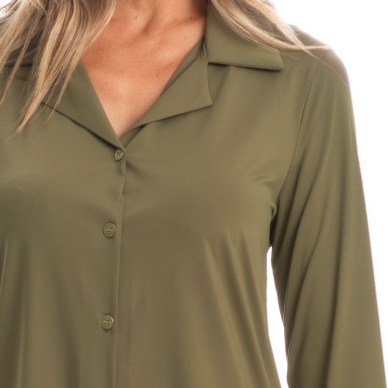 Camisa Feminina Shiitake é conforto e praticidade para seu dia a dia! Em modelagem muito soltinha, a Camisa Shiitake possui decote com gola e suas frentes são abotoadas com perfeito acabamento de botões bem fixados. Em uma modelagem que valoriza o corpo, priorizando pelo seu conforto perfeita para você ficar ainda mais linda e estilosa!