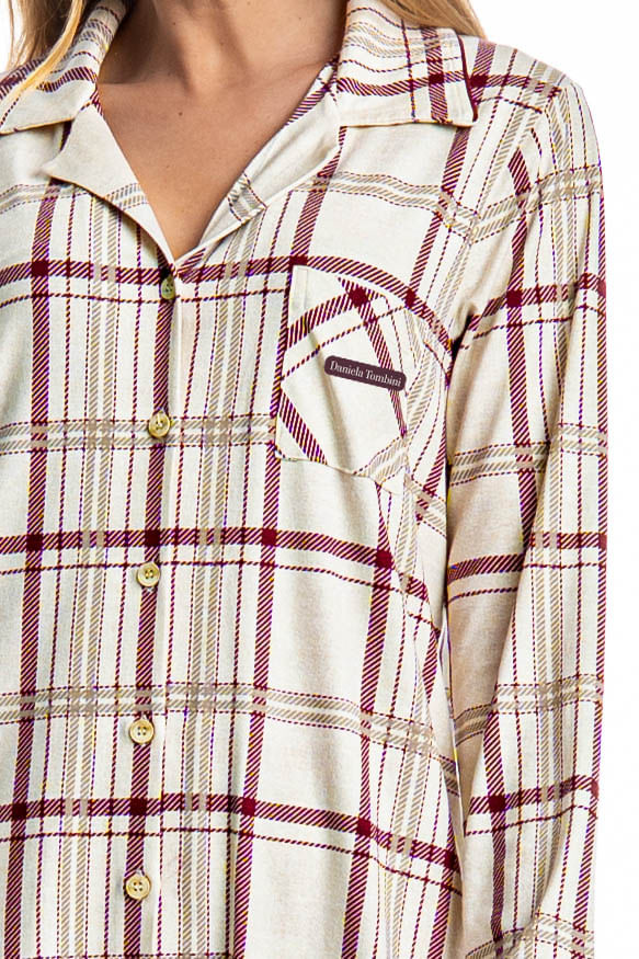 Camisão Abotoado Jaque é pura elegância! Um camisão com clássico xadrez e muito moderno, com uma modelagem ampla, perfeito para suas horas de descanso. Seu decote possui gola, suas mangas são longas, e sua frente é abotoada com botões bem fixados, e um impecável acabamento interno. Detalhe para seu bolso com aplicação de uma exclusiva etiqueta Daniela Tombini personalizada. Perfeito para te deixar ainda mais elegante e estilosa em suas noites!