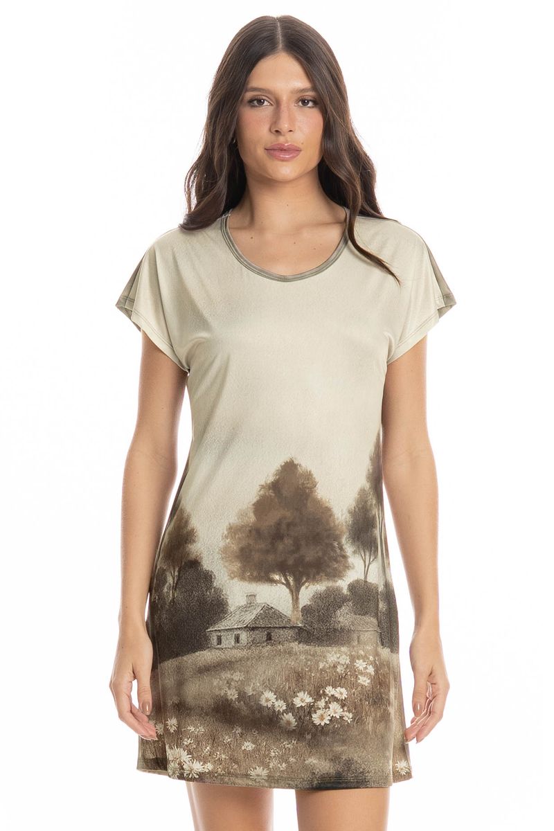 Camisão Campo é puro charme! Em comprimento curto e modelagem ampla, o Camisão Campo conta com mangas curtas e uma moderna estampa de campo, proporcionando muita sutileza à peça, impossível não se apaixonar!