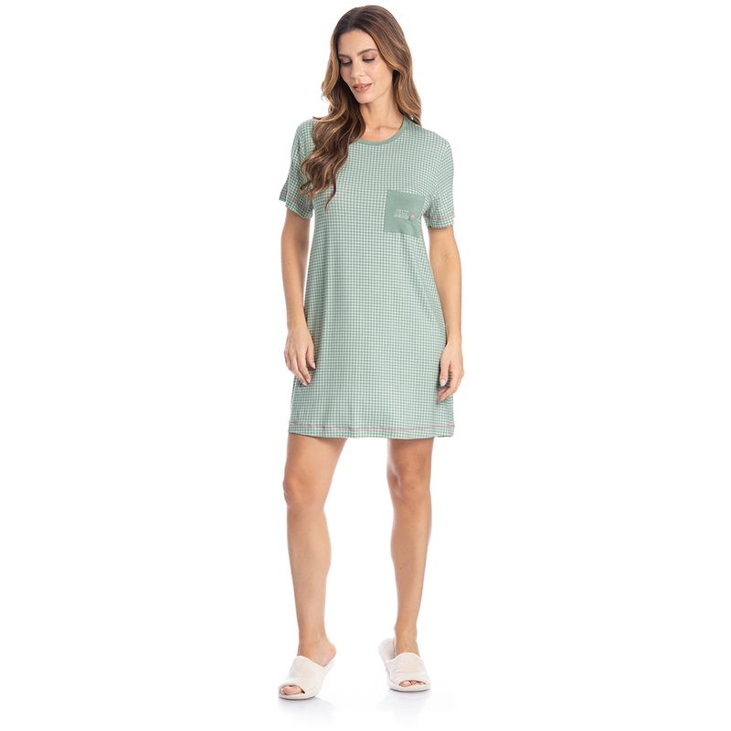 Camisão Com Bolso Vichy é estilo para suas noites! Em modelagem ampla e confortável seu decote é redondo debruado em viés, e possui bolso com um delicado bordado, garantindo muito charme e exclusividade. Detalhe para sua barra que conta com acabamento em trançador de tom contrastante, a escolha perfeita para você aproveitar a melhor estação do ano!