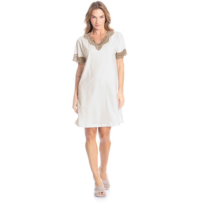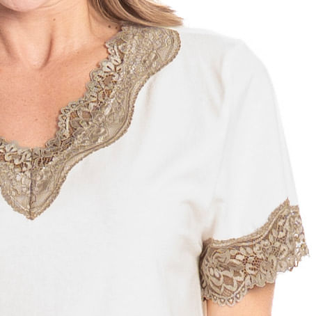 Camisão Com Renda Bela é puro conforto! Em comprimento curto, o Camisão bela possui mangas curtas e decote com aplicação em uma linda e sofisticada renda. A escolha perfeita para você ficar ainda mais linda em seus momentos de descanso!