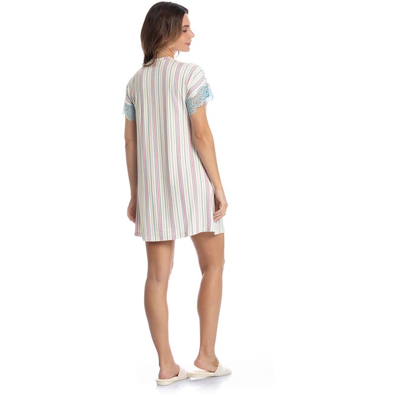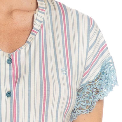 Camisão Curto Abotoado Com Renda Melissa é puro charme! Em modelagem extremamente confortável, em manga curta com aplicação de uma linda e delicada renda, possui decote redondo debruado em viés, e frentes abotoadas com impecável acabamento interno. Detalhe para seu bordado logo Daniela Tombini na lateral esquerda da peça. Muito conforto para suas noites de verão!