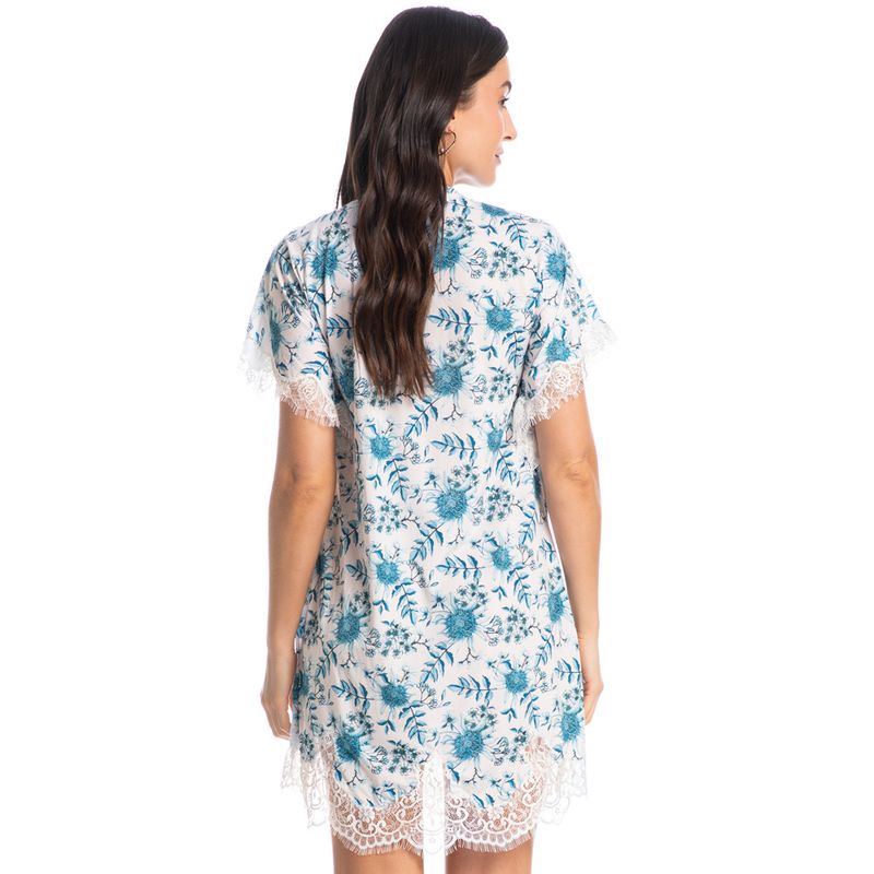 Camisão Curto Com Renda Dora é elegância para os dias mais quentes! Em modelagem ampla e comprimento curto, possui decote redondo e mangas alongadas. Detalhe para sua linda e sofisticada renda aplicada na barra e nas mangas conferindo muita delicadeza!