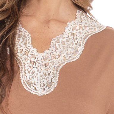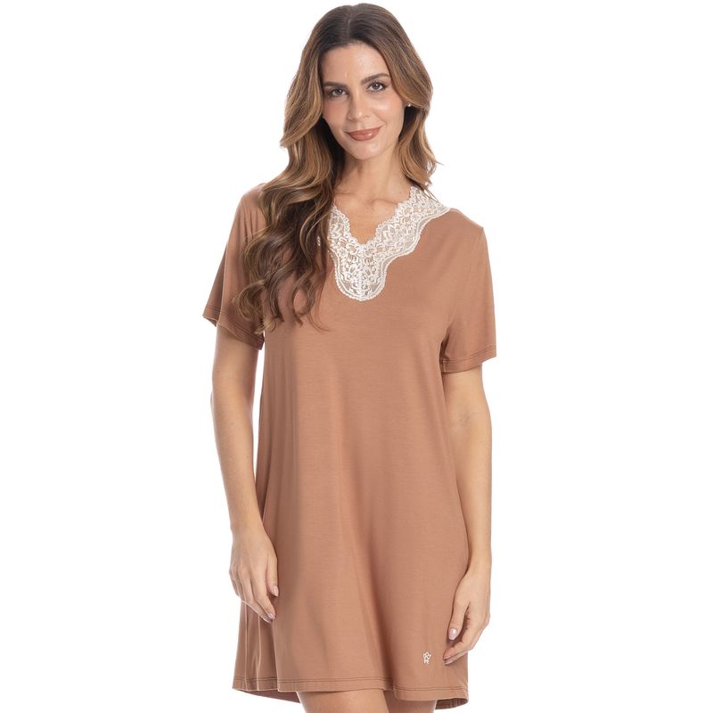 Camisão Curto Com Renda Marisa é puro conforto para suas noites de verão! Em uma modelagem ampla, o Camisão Marisa possui manga curta, e uma linda e delicada renda no decote. Detalhe para seu seu bordado logo Daniela Tombini na lateral inferior esquerda da peça, garantindo ainda mais charme!. A escolha perfeita para você aproveitar a melhor estação do ano!