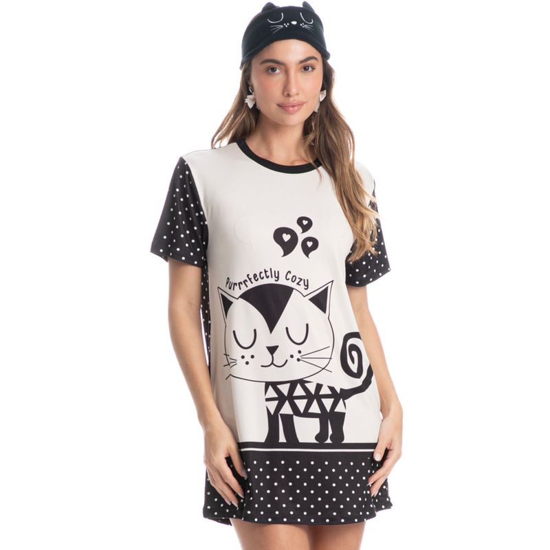 Camisão Curto Fred é puro charme! Em modelagem ampla e confortável seu comprimento é curto com decote redondo debruado em viés. Possui uma linda e exclusiva estampa de gatinho desenhada à mão. A coleção Fred foi desenhada pela artista Marlowa para quem é apaixonado por gatinhos, com estampas que celebram o amor felino, impossível não se apaixonar por cada detalhe!