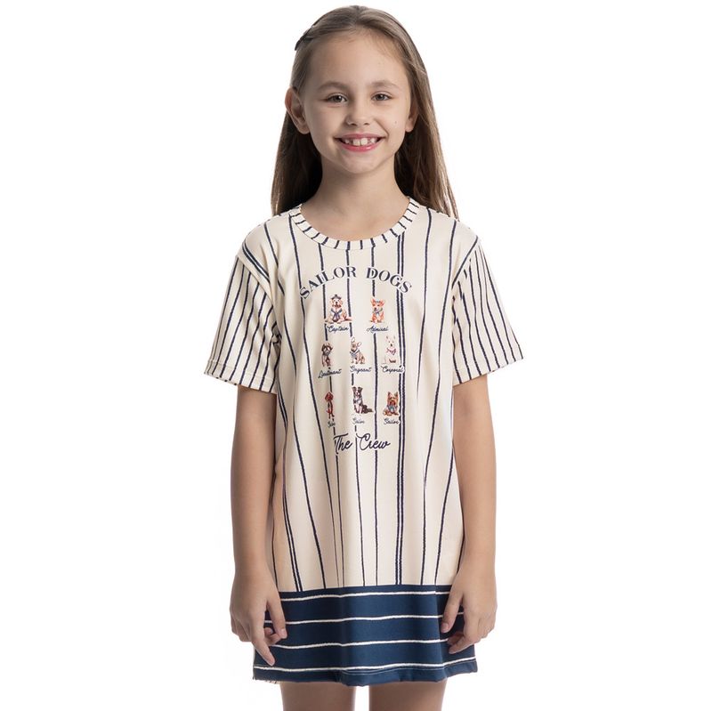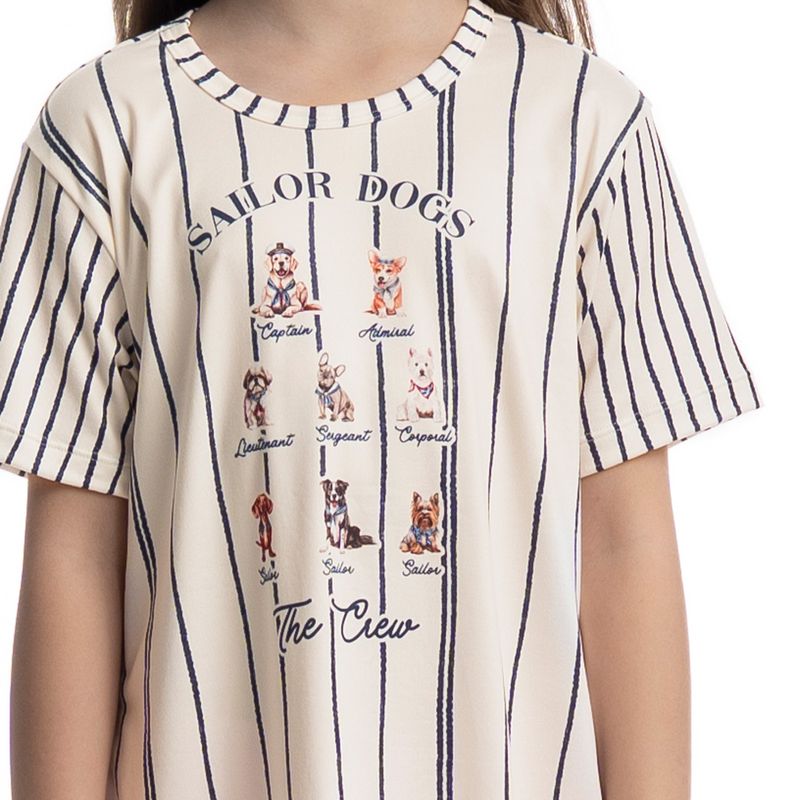 Camisão Curto Infatil Sailor Dogs é puro conforto! Em comprimento curto e modelagem ampla, o Camisão Sailor Dogs possui mangas curtas e decote redondo com acabamento em viés. Detalhe para sua divertida estampa exclusiva de cães marinheiros desenhada à mão. Impossível não se apaixonar!
