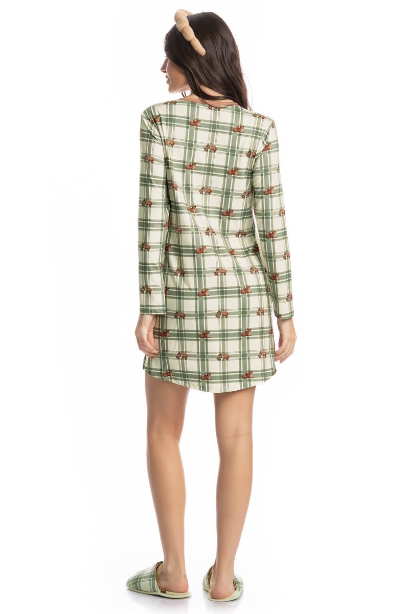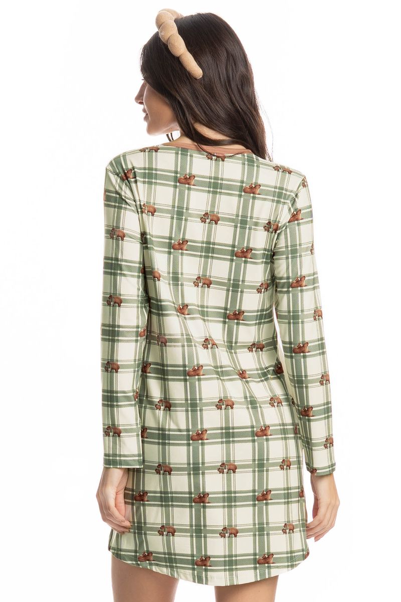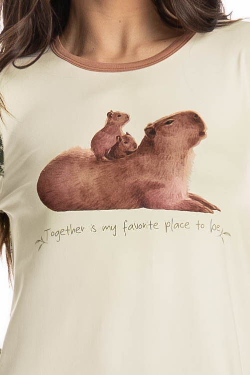 Camisão Curto Manga Longa Capivara é o conforto que você procurava! Em modelagem ampla e comprimento curto o camisão Capivara possui mangas longas, e decote redondo debruado em viés. Detalhe para sua linda estampa exclusiva desenhada à mão de Capivara e com a frase My Favorite Place Is Inside, impossível não se apaixonar!