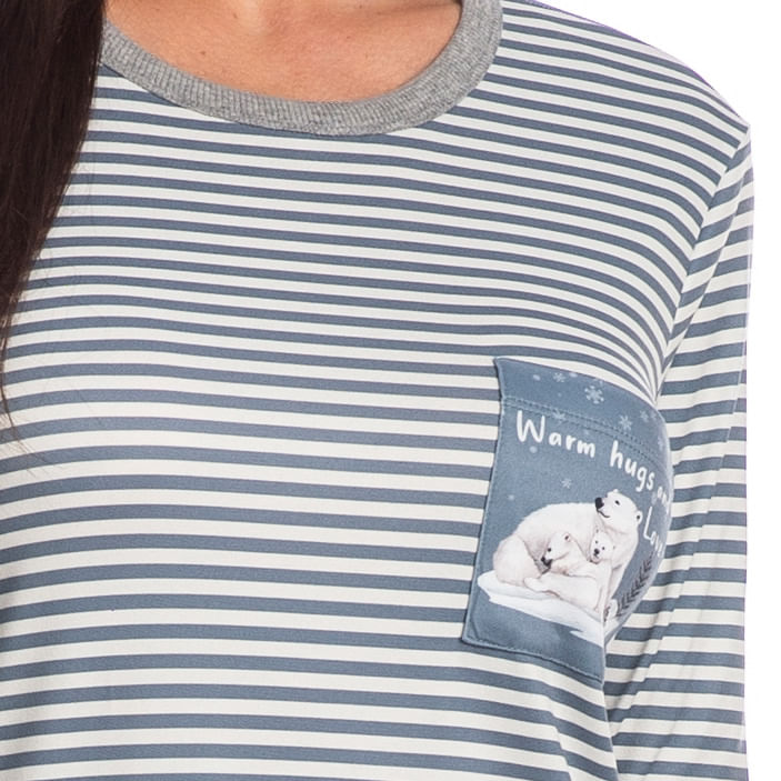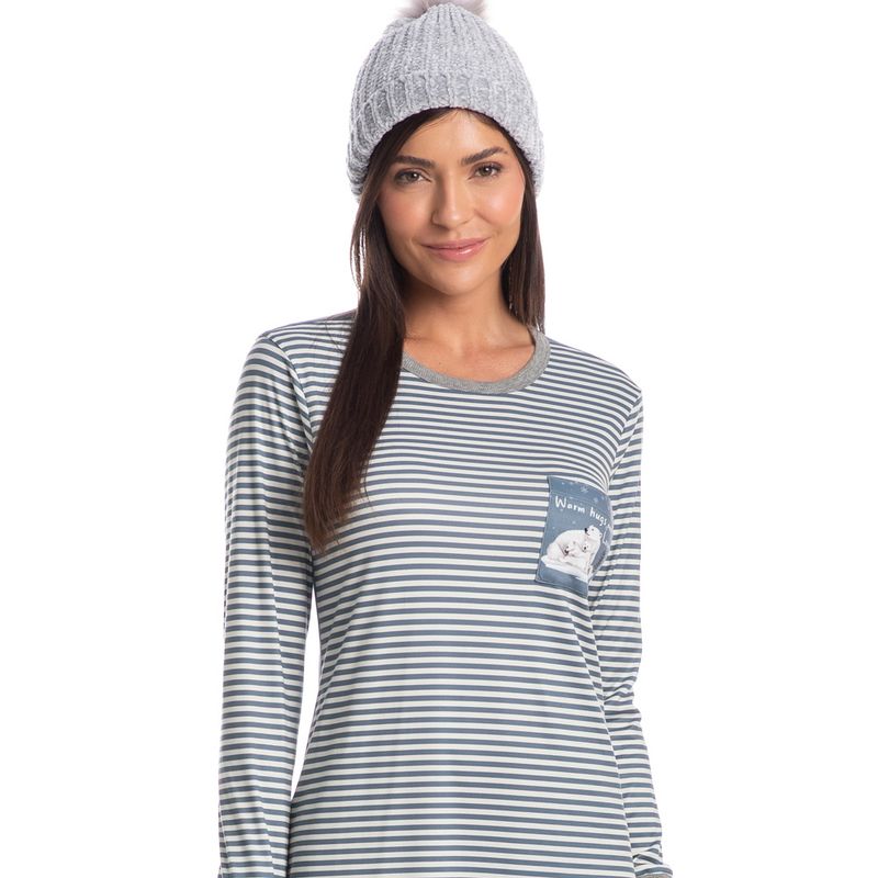Camisão Curto Manga Longa Com Bolso Listrado Polar é puro charme! Em modelagem ampla e confortável, seu comprimento é curto com manga longa e acabamento em punhos. Conta com bolso na lateral esquerda e estampa localizada nas costas de um fofo urso polar desenhada à mão. O camisão Polar é todo em um lindo e delicado listrado, impossível não se apaixonar!