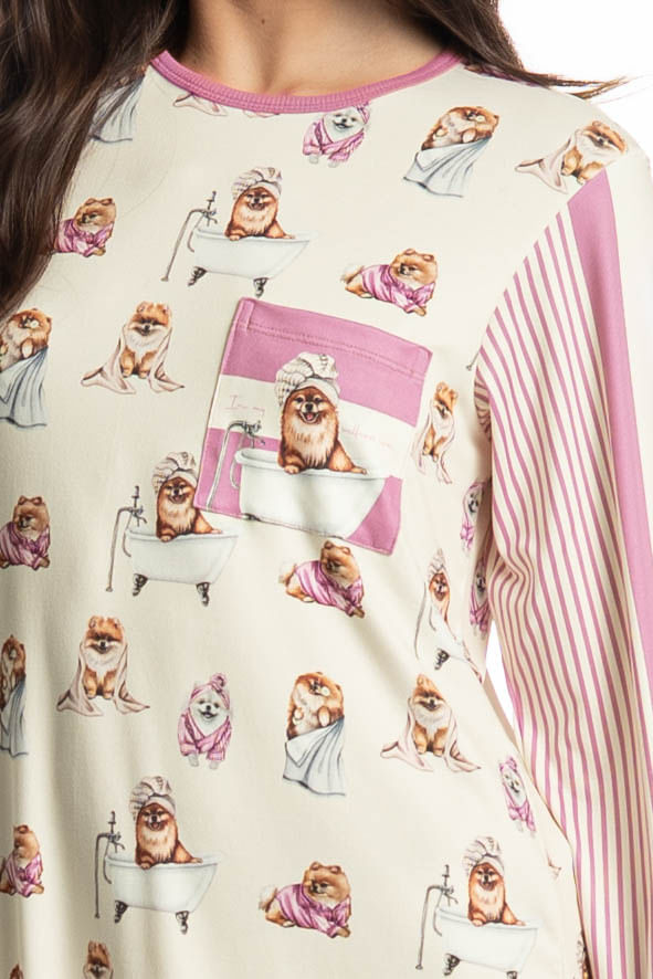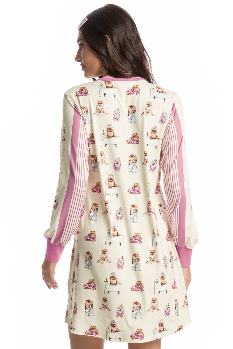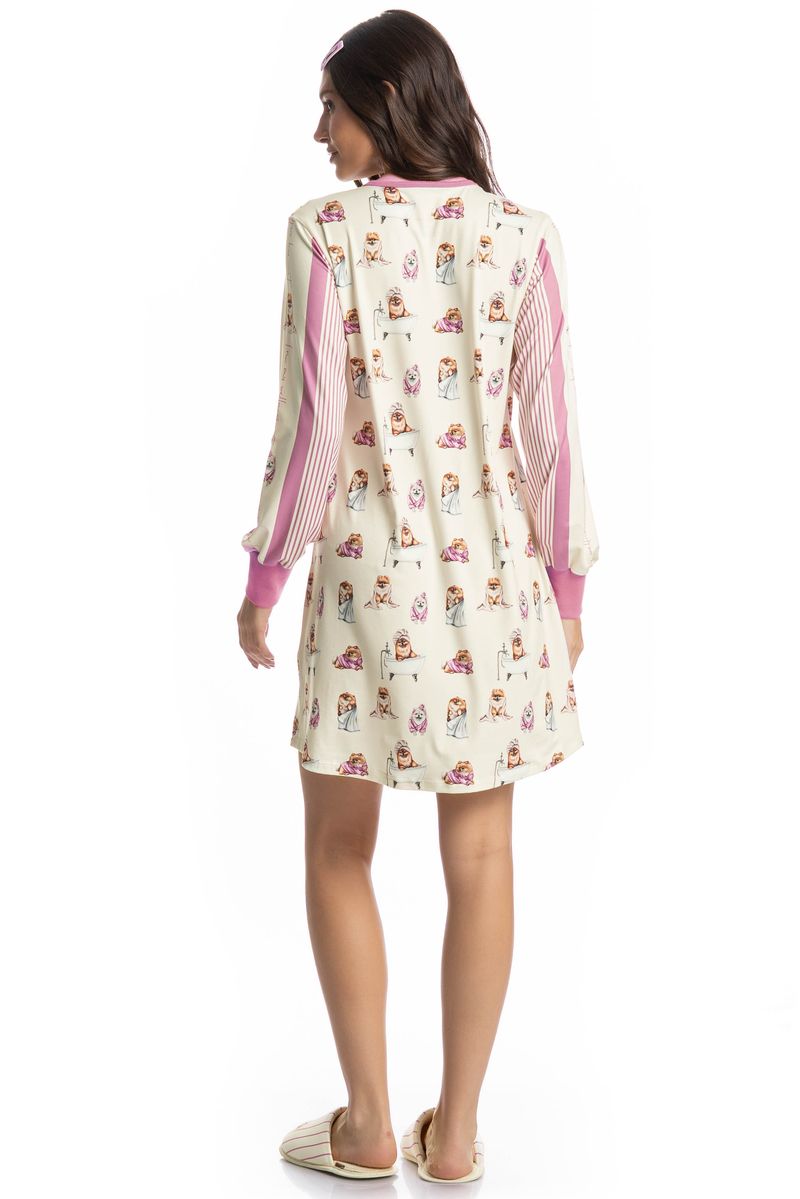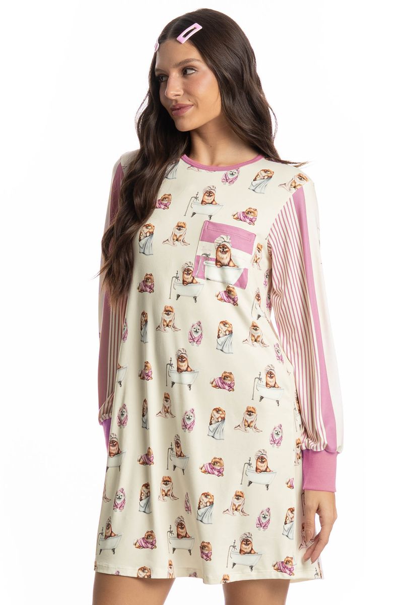 Camisão Curto Manga Longa Lyla Spa é o conforto que você procurava! Em modelagem ampla e comprimento curto o camisão Lyla Spa possui mangas longas com punhos, e decote redondo debruado em viés, possui bolso na lateral esquerda. Detalhe para sua linda estampa exclusiva desenhada à mão da nossa mascote Lyla, impossível não se apaixonar!