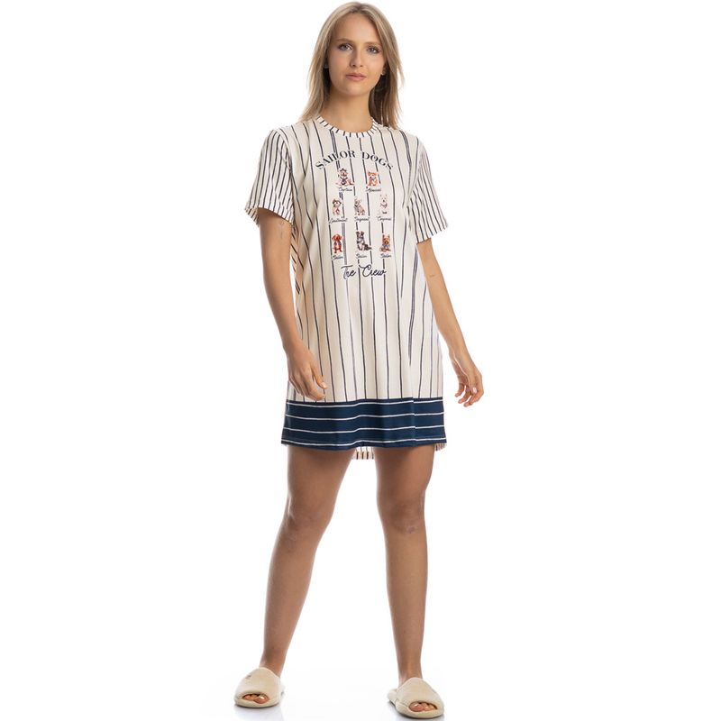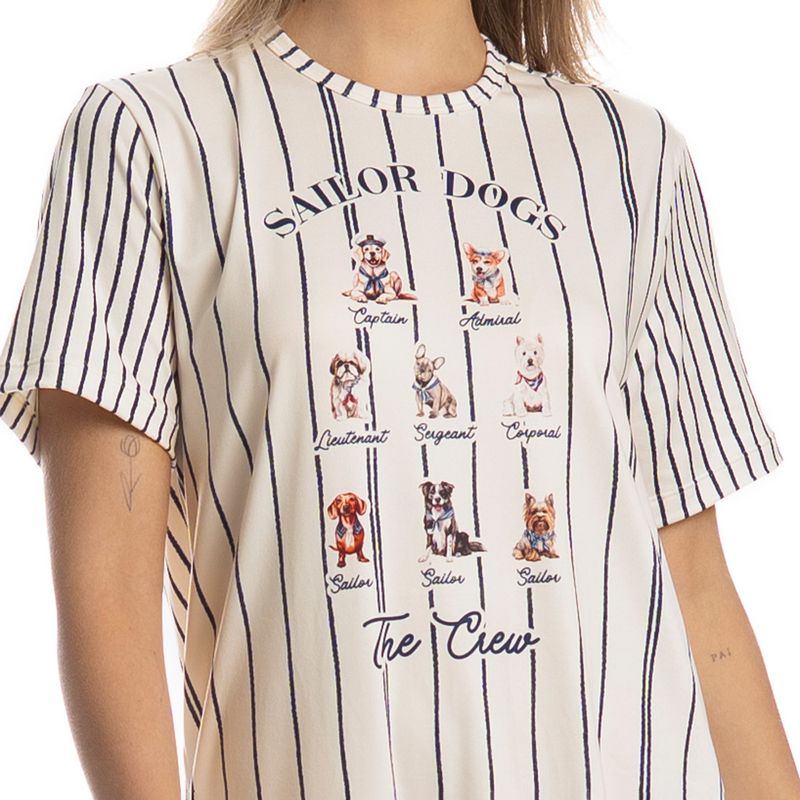 Camisão Curto Sailor Dogs é puro conforto! Em comprimento curto e modelagem ampla, o Camisão Sailor Dogs possui mangas curtas e decote redondo com acabamento em viés. Detalhe para sua divertida estampa exclusiva de cães marinheiros desenhada à mão. Impossível não se apaixonar!