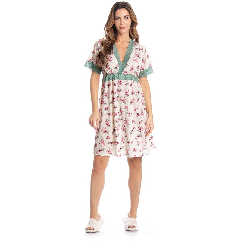 Camisão Curto Transpassado Giulia é puro conforto! Em comprimento curto e modelagem ampla, o Camisão Giulia possui mangas curtas e decote em V transpassado. Detalhe para sua exclusiva estampa floral, e suas aplicações em renda nas mangas, decote e abaixo do busto proporcionando muita delicadeza à peça.
