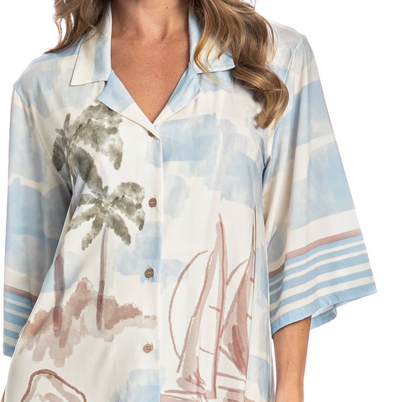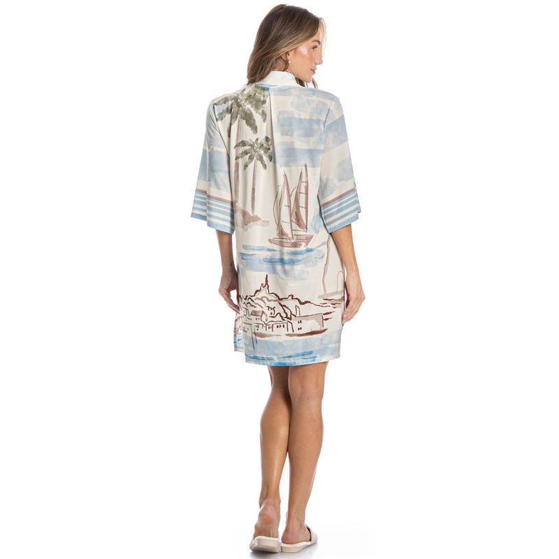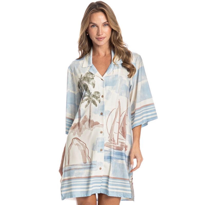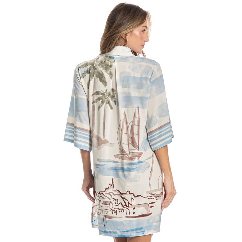 Camisão Feminino Abotoado La Serenità é pura elegância! Em modelagem ampla e extremamente confortável, a peça possui decote com acabamento em gola, sua frente é abotoada com um excelente acabamento e botões bem fixados. Detalhe para sua exclusiva estampa Daniela Tombini, perfeita para te deixar ainda mais elegante e estilosa em suas noites!
