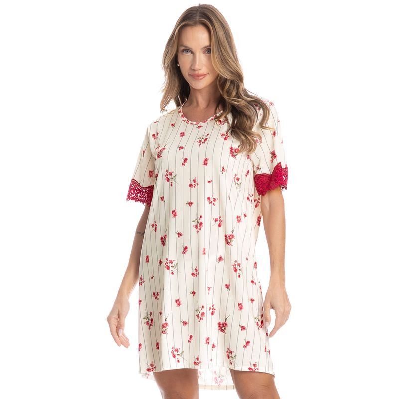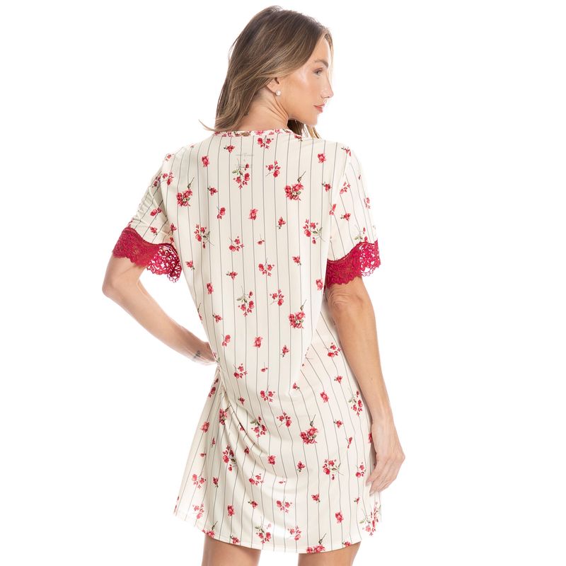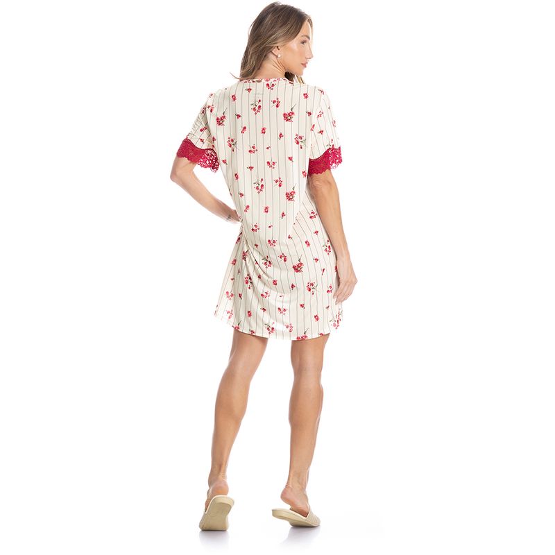 Camisão Feminino Curto Com Renda Primavera é puro conforto! Em modelagem ampla e comprimento curto, o Camisão Primavera possui decote redondo debruado em viés, e mangas curtas com aplicação de uma sofisticada renda. Detalhe para sua linda e delicada estampa floral, uma peça que garante muito conforto, leveza e suavidade para os melhores momentos!