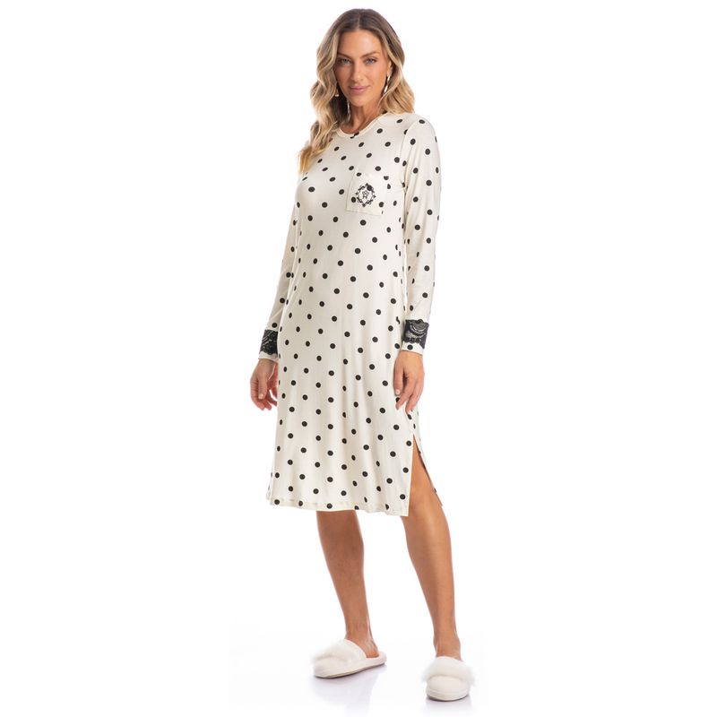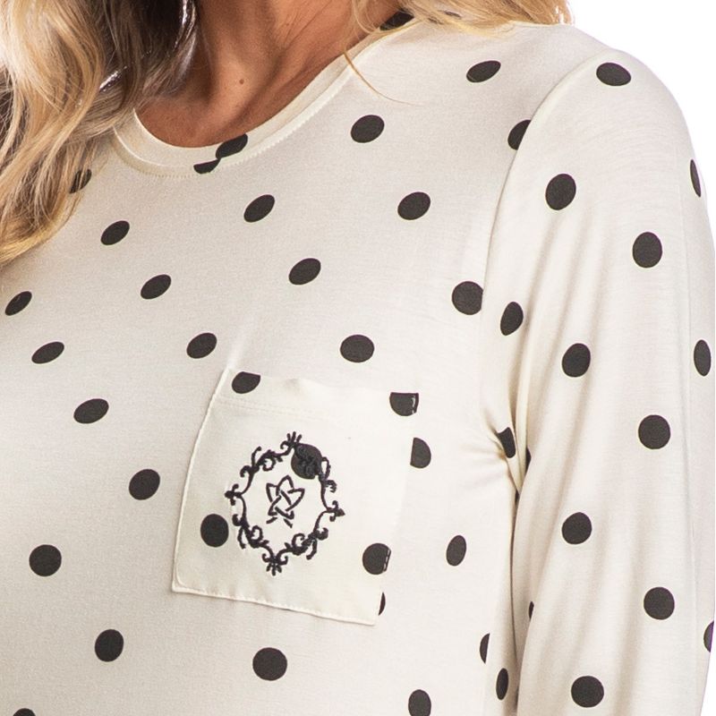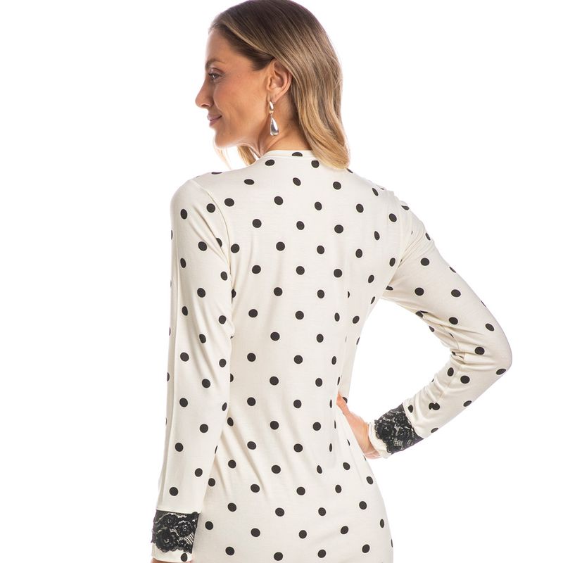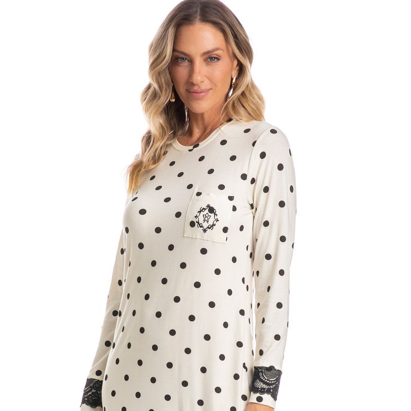 Camisão Feminino Midi Poá Agatha é conforto para suas noites! Em comprimento midi e modelagem ampla, o camisão Agatha possui mangas longas com acabamento em punhos com uma delicada renda aplicada. Detalhe para seu bolso com bordado brasão Daniela Tombini, impossível não se apaixonar!