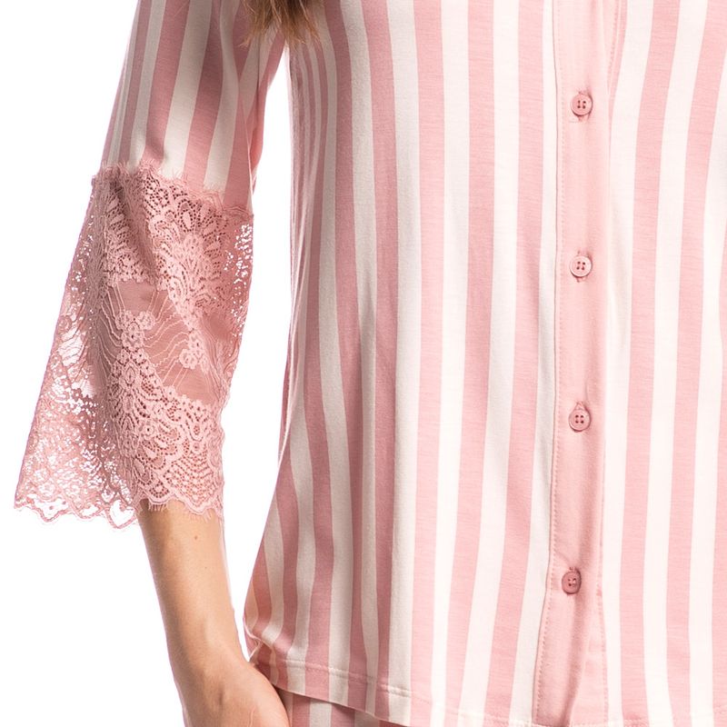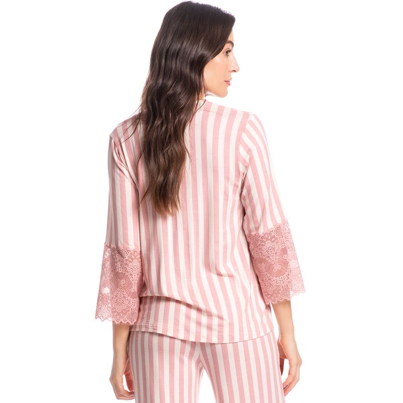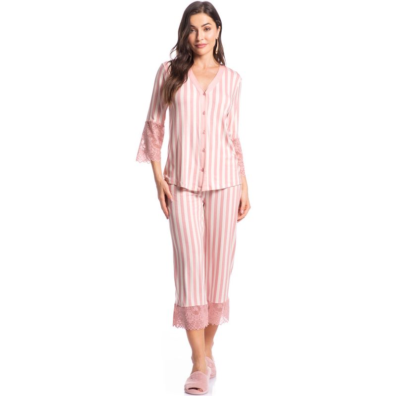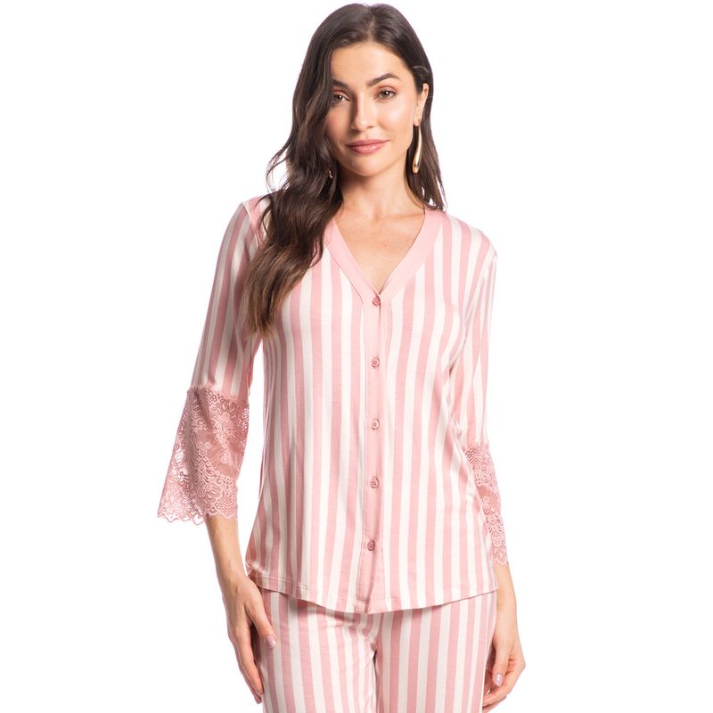 Camisão Feminino Pantacourt Abotoado Com Renda Helena é puro conforto para todas as horas! Em modelagem ampla e extremamente confortável, a peça possui manga com aplicação de renda, decote em V com frente abotoada com um excelente acabamento e botões bem fixados. Sua calça possui modelagem pantacourt mais solta com aplicação de renda na barra, e conta com elástico macio e confortável no cós. A opção perfeita para você desfrutar o melhor da estação!