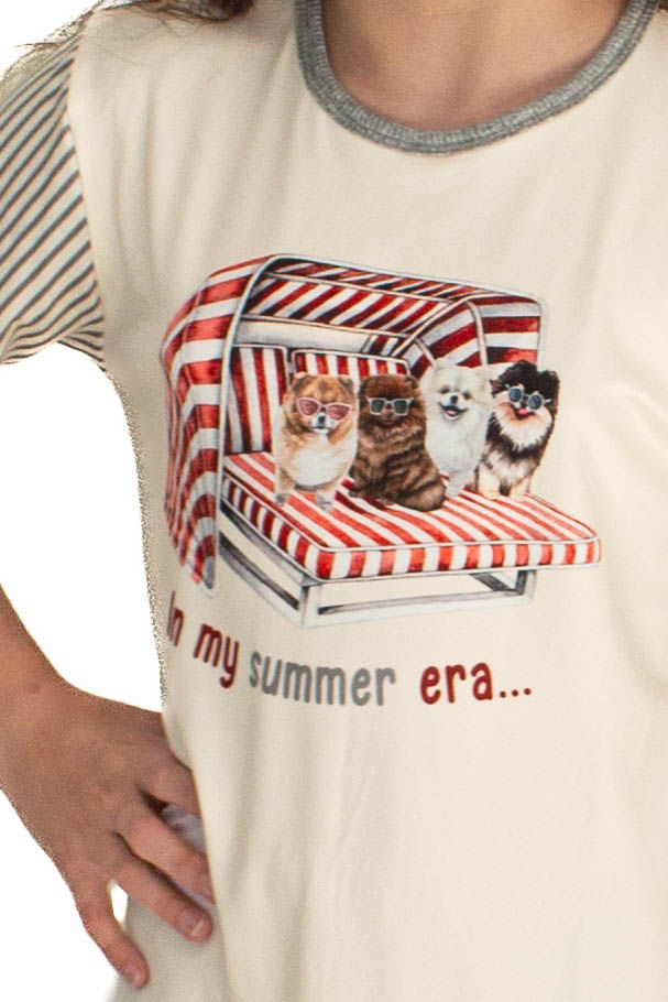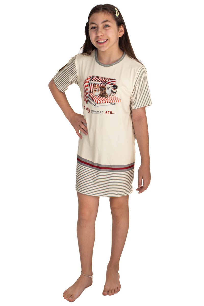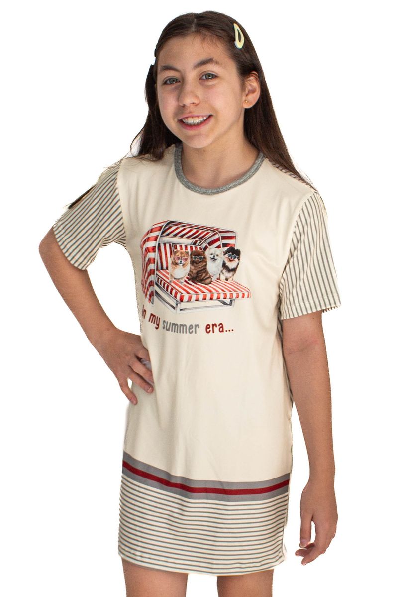 Camisão Infantil Lyla Summer é puro charme! Em modelagem ampla e confortável, seu comprimento é curto com decote redondo e acabamento em viés. Possui uma exclusiva estampa localizada Lyla com escrita “In my summer era”. Em uma linda combinação de cores que oferecem muita delicadeza a peça, impossível não se apaixonar!