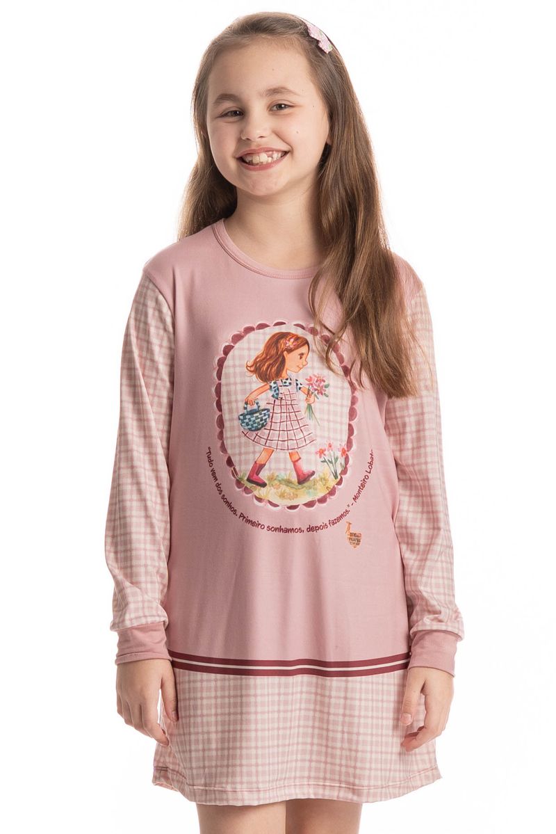 Camisão Infantil Manga Longa Sítio Do Picapau Amarelo é o conforto que você procurava! Em modelagem ampla e comprimento curto o camisão possui mangas longas com punhos, e decote redondo debruado em viés. Detalhe para sua linda estampa exclusiva desenhada à mão da personagem Narizinho, conta também com a frase do Monteiro Lobato “Tudo vem dos sonhos, primeiro sonhamos, depois fazemos”, impossível não se apaixonar!