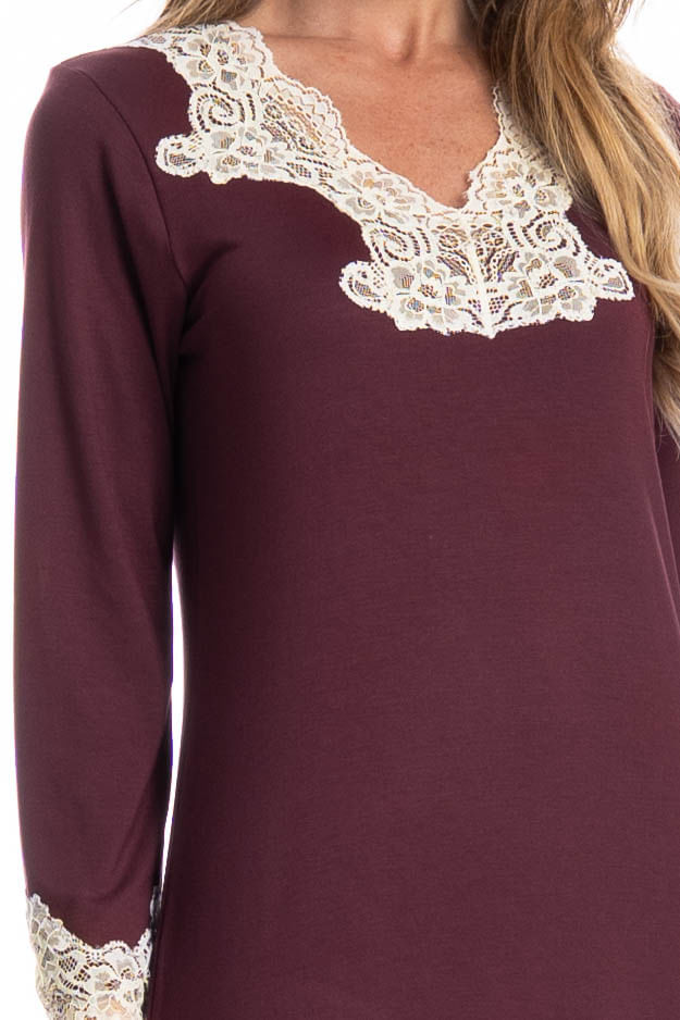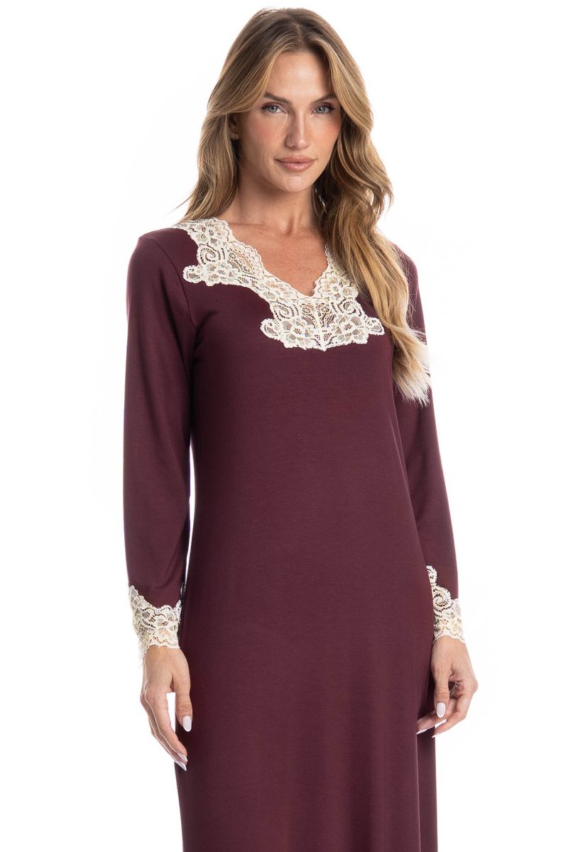 Camisão Longo Acácia é puro conforto para suas noites! Em uma modelagem ampla, o Camisão Acácia possui manga longa, e uma linda e delicada renda aplicada no decote e nos punhos. Detalhe para sua fenda na lateral da peça, a escolha perfeita para você aproveitar o melhor da estação!