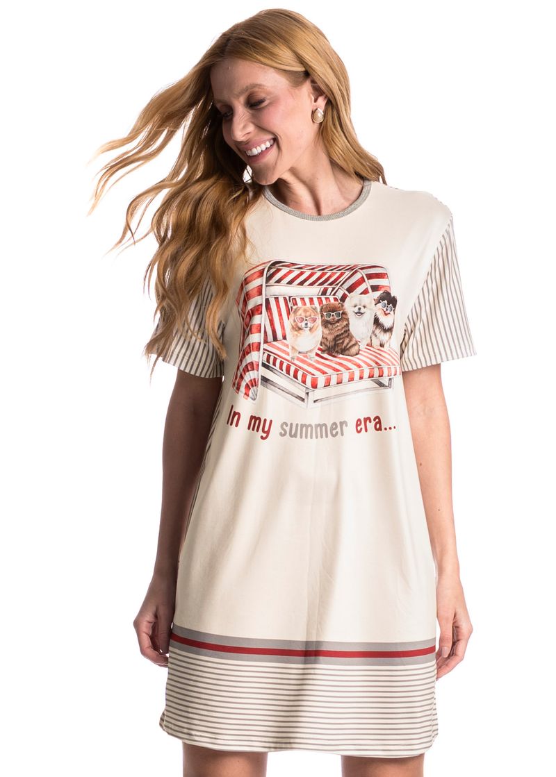 Camisão Lyla Summer é puro charme! Em modelagem ampla e confortável, seu comprimento é curto com decote redondo e acabamento em viés. Possui uma exclusiva estampa localizada Lyla com escrita “In my summer era”. Em uma linda combinação de cores que oferecem muita delicadeza a peça, impossível não se apaixonar!