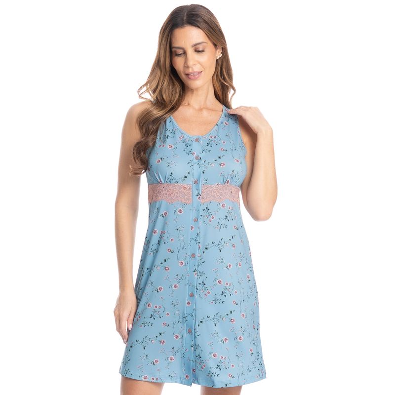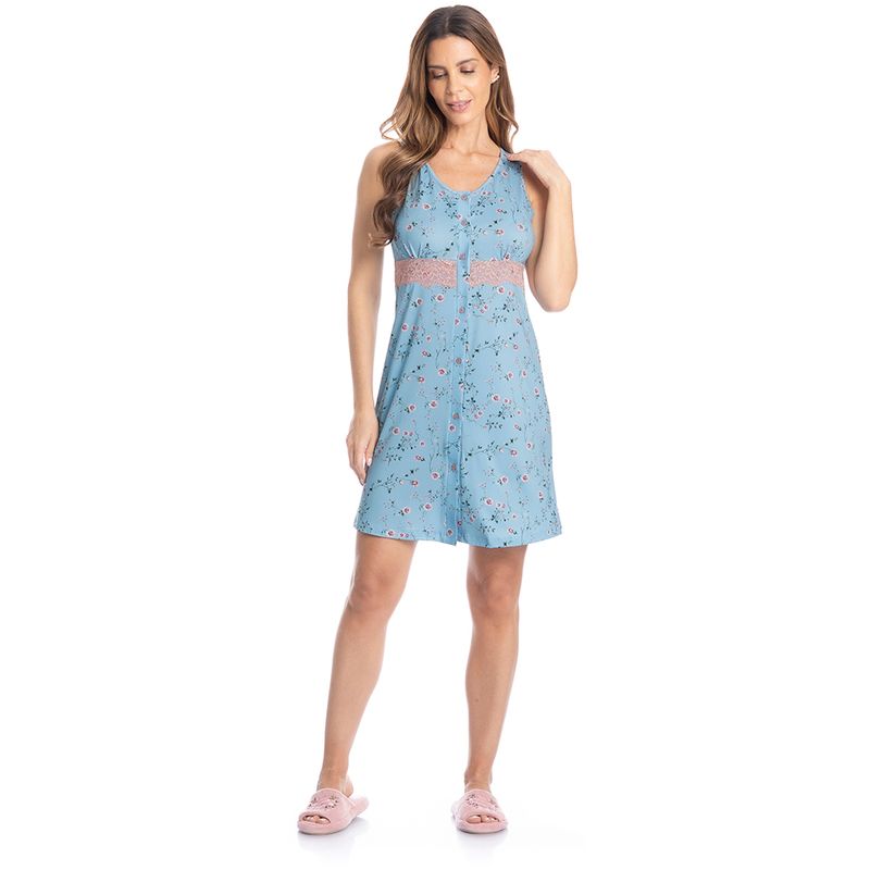 Camisão Regata Abotoado Com Renda Rosa é puro charme! Em modelagem extremamente confortável, conta com aplicação de uma linda e delicada renda sobreposta abaixo do busto, possui decote redondo com acabamento em viés, e frente abotoada com impecável acabamento interno. Muito conforto para suas noites de verão!