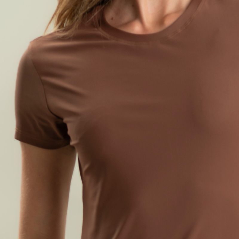 Confeccionado em Poliamida, tecido com visual suavemente texturizado e estrutura elastizada, é uma malha de extremo conforto junto à pele e agradável no uso diário.