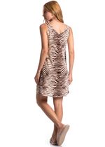 Confeccionado em New print, tecido extremamente macio e leve, formado por fios de filamentos de poliéster e elastano.