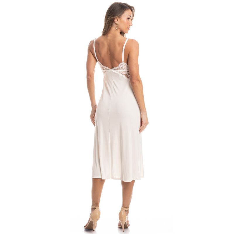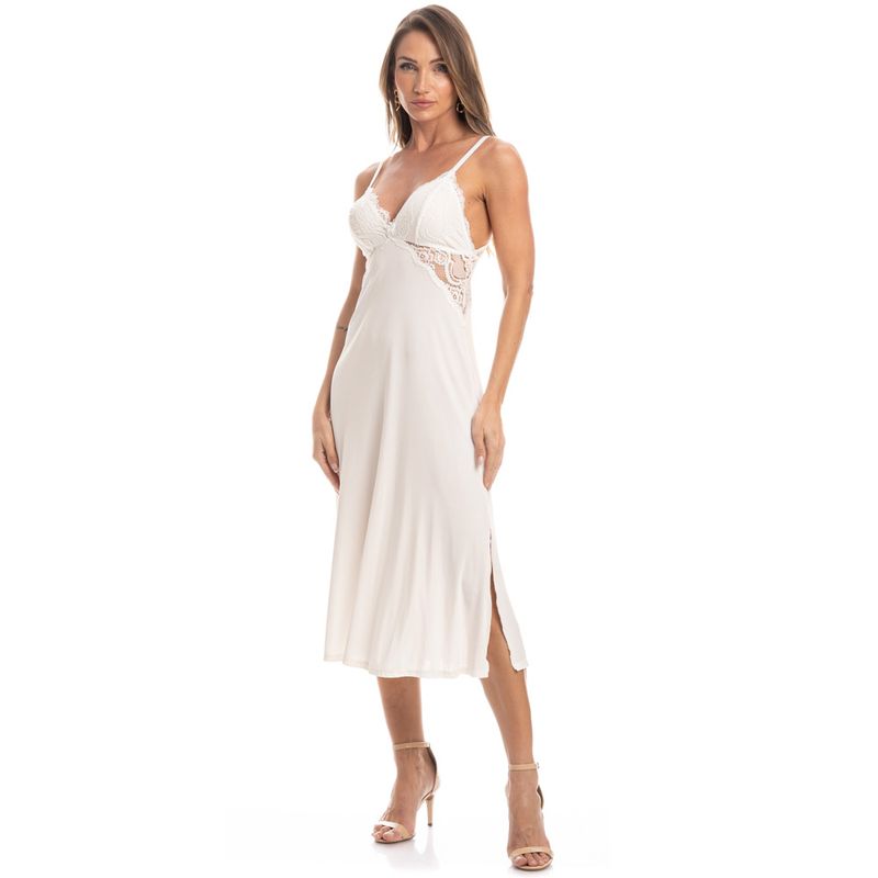 Camisola Midi Com Renda Lua é puro charme! Em modelagem muito confortável, seu comprimento é midi e suas alças são reguláveis. Detalhe para o seu busto e laterais com aplicação de uma sofisticada renda e delicado laço no centro do busto. Suas laterais possuem pequenas abertura, garantindo excelente caimento e fluidez. A escolha perfeita para você aproveitar o melhor da estação!