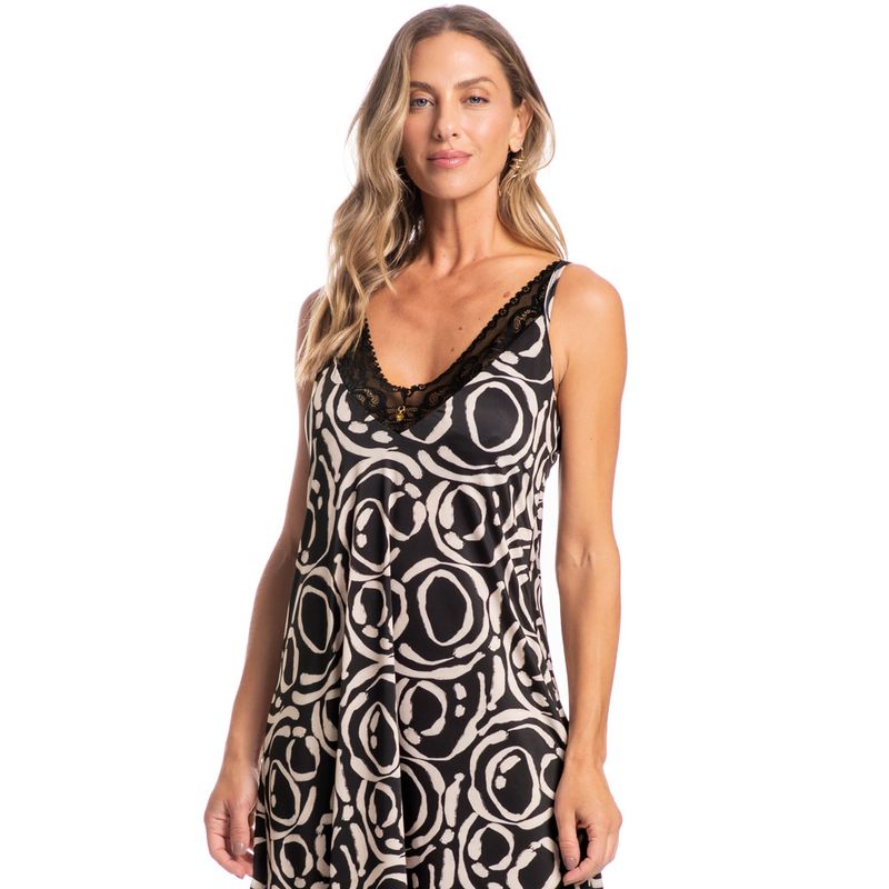 Camisola Midi Com Renda Mari Heloisa é a combinação de elegância e conforto! Em modelagem muito confortável, seu comprimento é midi com aberturas nas laterais e suas alças são reguláveis. Possui decote triângulo com renda vazada que valoriza o busto, além do delicado pingente no centro do busto que proporciona muito chame e delicadeza para as suas noites.