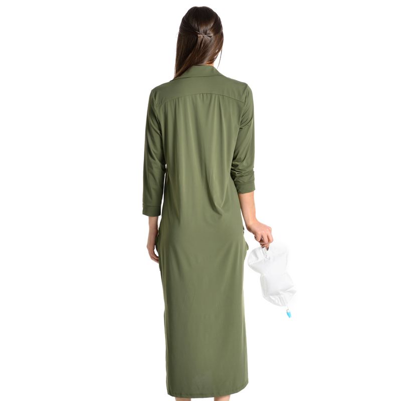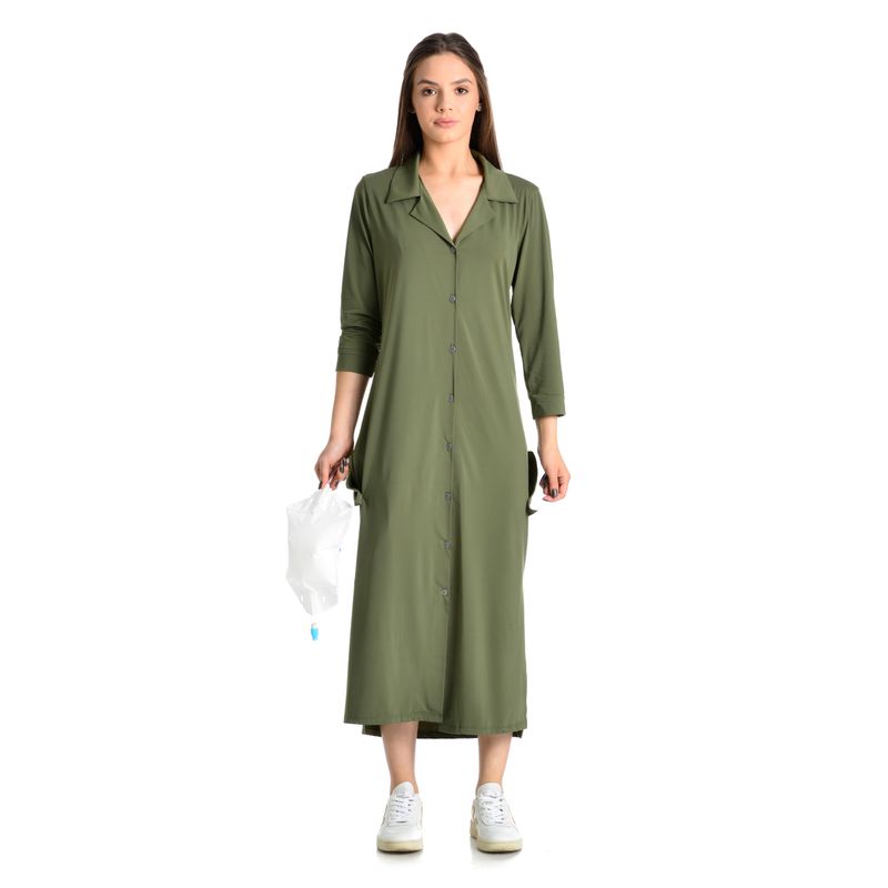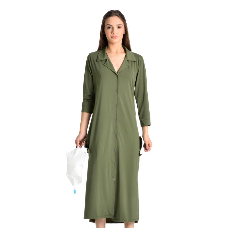 Chemise Feminina Manga Longa Pós-Cirúrgico Fluity Chloe é conforto e praticidade para seus dias de recuperação! Em modelagem muito soltinha, a Chemise em manga longa possui decote com gola e suas frentes são abotoadas com perfeito acabamento de botões bem fixados. Seu comprimento é longo e possui bolsos frontais com abertura discreta para a saída do dreno. Apresenta um caimento incrível com um tecido leve e fluido.