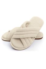 Chinelo Em Atoalhado Bia é puro charme e elegância! Confeccionado em Atoalhado, tecido com predominância do algodão, muito macio, confortável e de toque felpudo. Possui detalhe de tiras transpassadas, sola antiderrapante para sua segurança, e sua lavagem pode ser feita a máquina. Detalhe para sua espuma anatômica, com alta densidade e efeito memória que proporcionam maior durabilidade.