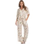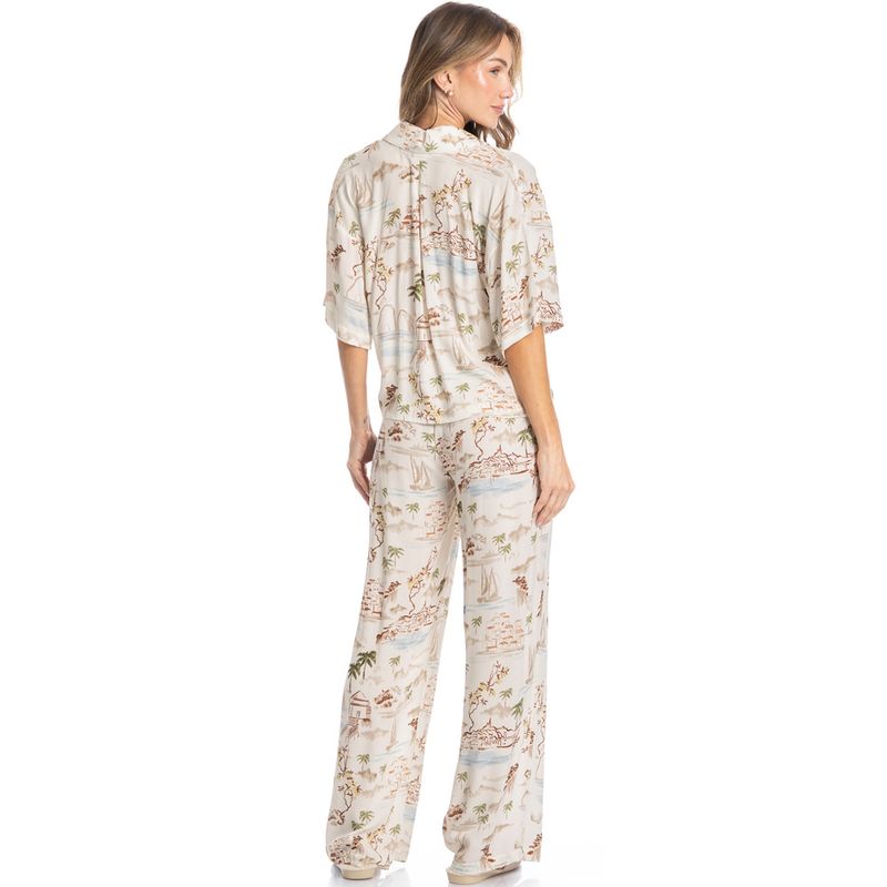 Conjunto Longo Americano La Serenità é conforto para suas horas de descanso! Sua blusa em modelagem ampla e confortável conta com gola, mangas amplas, e sua frente é abotoada com perfeito acabamento e botões bem fixados. Sua calça possui modelagem ampla com elástico macio e amarre no cós para o ajuste perfeito. Tudo para te deixar ainda mais elegante e estilosa em suas noites!