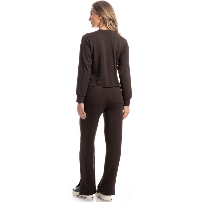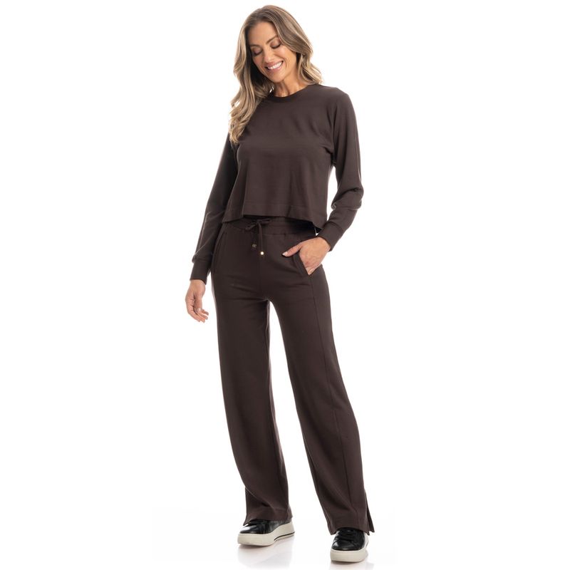 Conjunto Feminino Em Moletinho Manoela é o conforto que você merece! Sua blusa ampla em modelagem soltinha, possui decote redondo com acabamento em gola, e suas mangas contam com punhos. Sua calça também em uma modelagem muito confortável, possui cós com amarre, e bolsos funcionais frontais e traseiros. Detalhe para suas pequenas aberturas na barra, proporcionando ainda mais movimento à peça. Escolha perfeita para você ficar ainda mais linda nesse inverno!