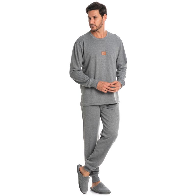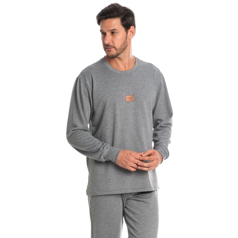 Conjunto Masculino Longo Em Moletinho Vicenzo é puro conforto! Em modelagem ampla e confortável, sua blusa em manga longa possui decote redondo e punhos em tecido ribana. Detalhe para sua etiqueta quadrada personalizada Tombini no centro da peça. Já a sua calça também muito confortável, possui elástico macio no cós e punhos em ribana. O conjunto perfeito para te deixar muito confortável nos dias mais frios!