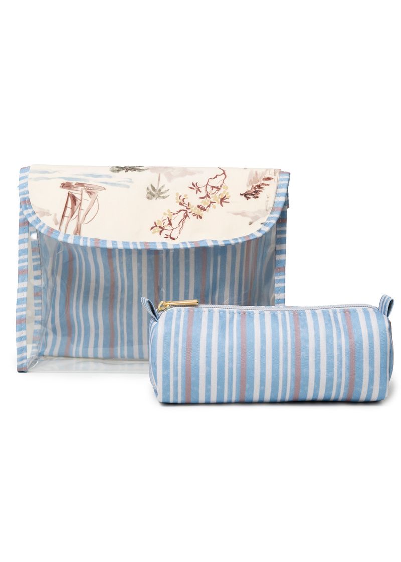 Conjunto Necessaire La Serenità é praticidade e charme em dose dupla! Produzido em tecido Oxford de alta qualidade, o conjunto inclui duas peças funcionais: uma necessaire pequena com fechamento em zíper, perfeita para itens essenciais, e uma necessaire maior com fechamento em velcro, ideal para guardar objetos maiores. O modelo grande conta ainda com detalhes em plástico 100% PVC, garantindo proteção extra e fácil limpeza. O design listrado com toque delicado e cores suaves transmite elegância e versatilidade para o seu dia a dia.